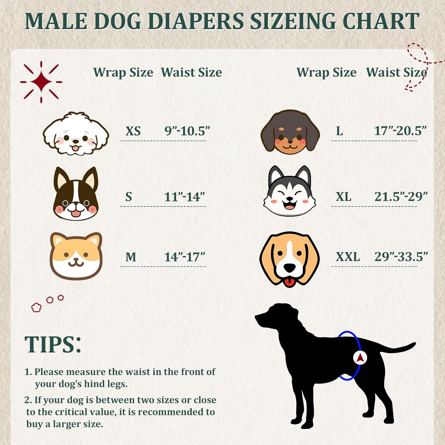 - Breathable and Comfortable: The lining surface of this male dog wrap is made of breathable and soft knitted fabric, which is skin-friendly and comfortable for your pet to wear without burden. The khaki-colored lining allows you to check your dog's urination in time and protects your puppy male dog's nappy from urine stains, which can affect the aesthetics and prolong the service life. The ones with shrink-stretch edges can fit the waistline and increase wearing comfort.