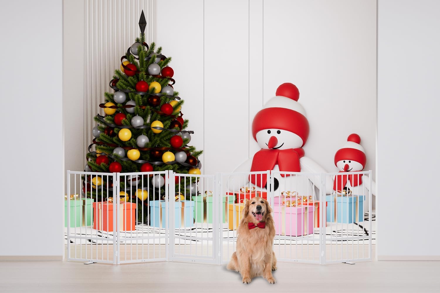 - [Versatile Sizes]: Our pet dog gate is available in 24-inch and 32-inch heights, perfect for puppies, small and medium dogs pets. Multi-choice of 2 panles, 4 panles and 6 panles, suitable for stairs, kitchens, bedroom doors, corridors and other indoor and outdoor forbidden areas.