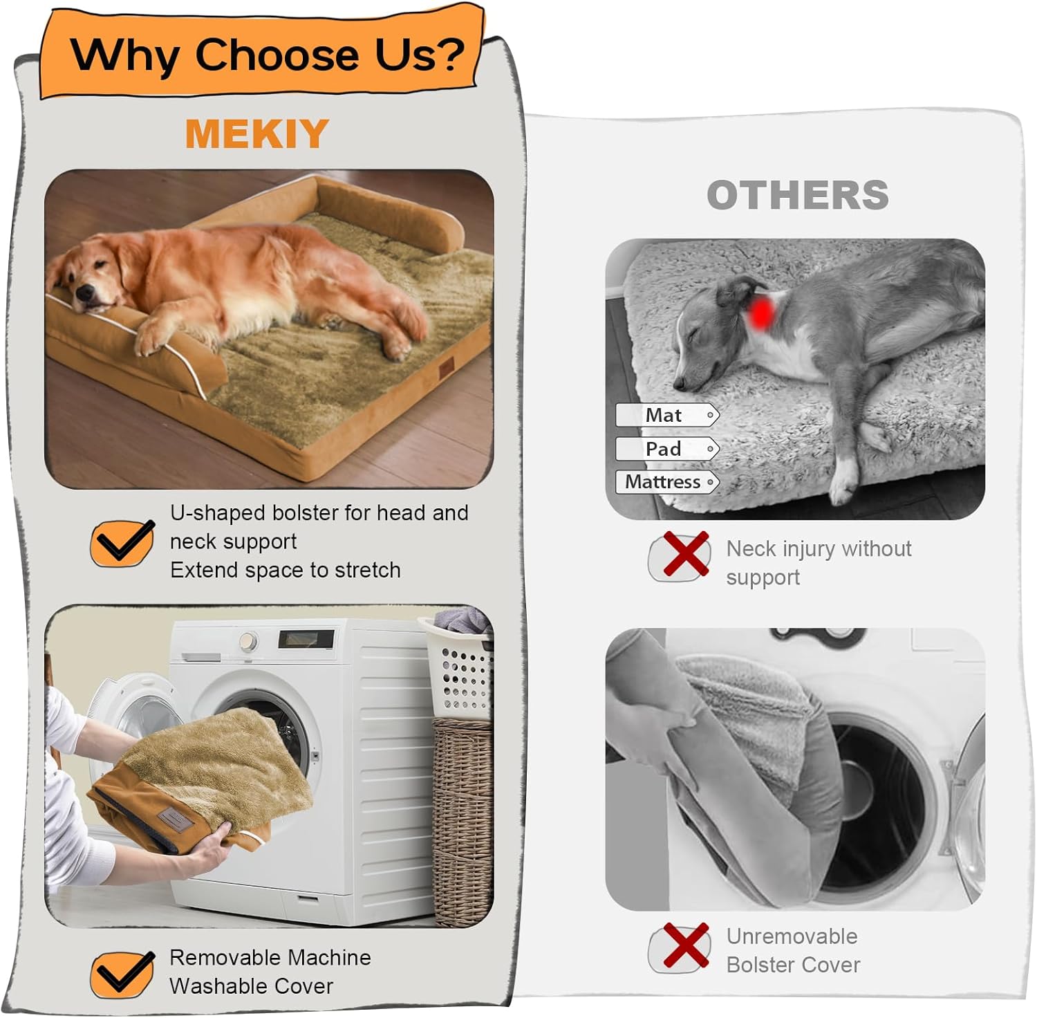 - 【U Shaped Bolster】 The Mekiy dog bed features a U shaped support structure that provides extra support for your dog's head and neck, helping them maintain a correct sleeping posture