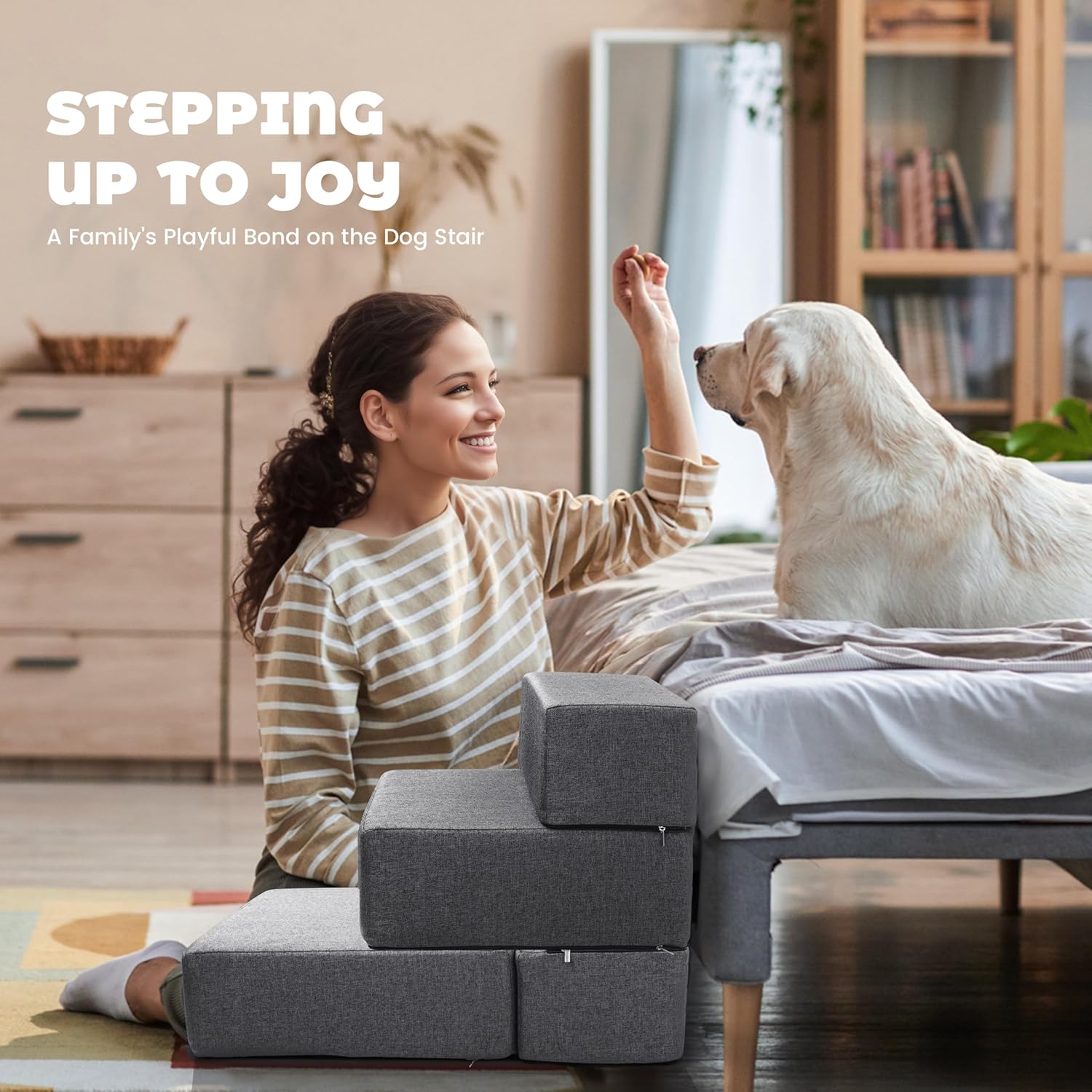 - HIGH DENSITY FOAM: Pet stairs are filled with high-density foam, offering firm yet comfortable support that's just right—not too soft, not too hard; The outer layer is crafted from cotton-linen fabric, which provides a non-slip surface while ensuring a pleasant touch for your pet