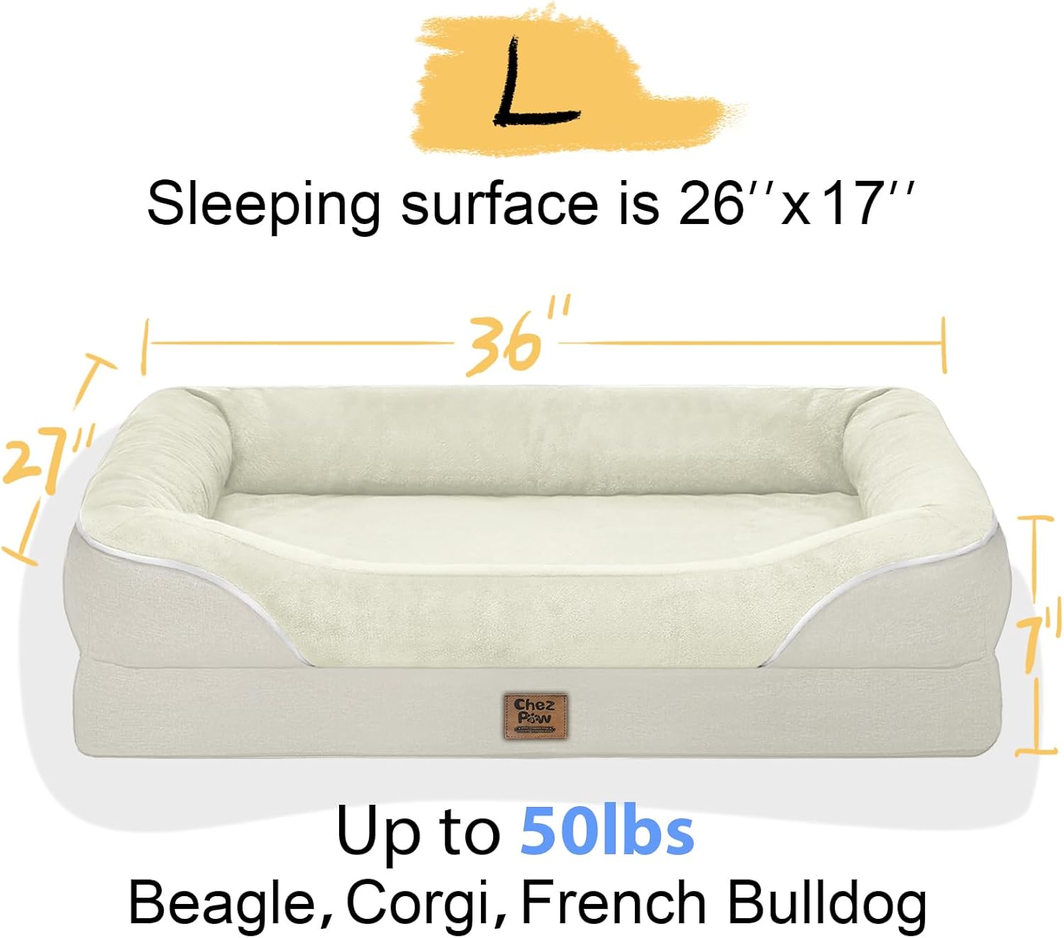 - Waterproof and Easy to Clean: This large sized dog bed is coated with waterproof inner lining that effectively protect the mattress from any unexpected spills; The cover features dual zippers for easy removal, toss the cover into the washing machine for a thorough clean, making cleaning a breeze
