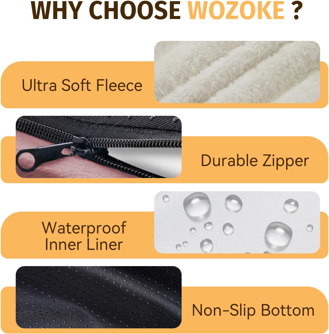 - Skin Friendly Materials: Wozoke washable dog bed is crafted with ultra soft fleece to keep your furry friend warm and comfortable throughout their rest; This luxurious fabric is non shed, ensuring long lasting use and maintaining its softness even after multiple washes