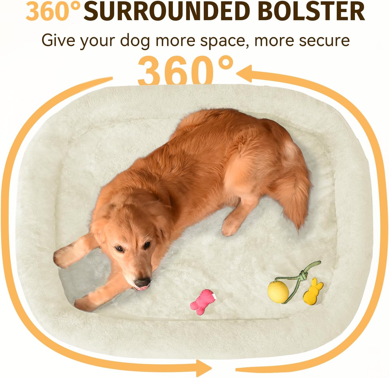 - 360° Surrounded Support: This 360° full circle design creates a secure sleeping environment, making dog bed large ideal for dogs who prefer a more enclosed space; The bolsters also served as a headrest that provides additional support for the neck and back; Whether your dog likes to curl up or stretch out, this orthopedic dog bed accommodates all sleeping positions