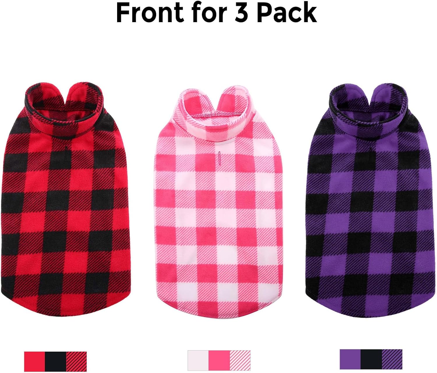 ASENKU Dog Sweater 3 Pack - Plaid Fleece Vest, Soft Comfortable Pet Pajamas, Warm Winter Shirt, Cold Weather Coat Jacket for Small & Medium Breeds