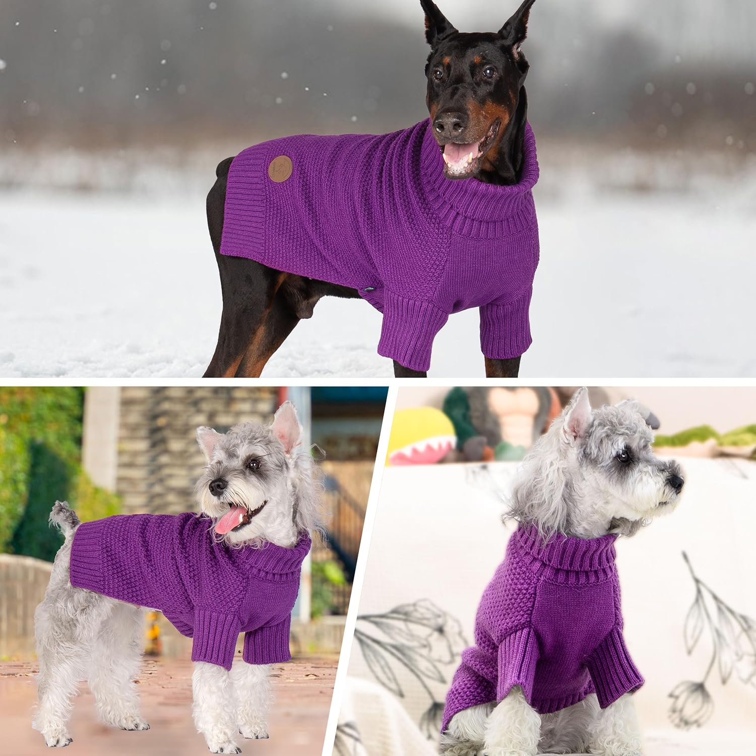 - Fashionable Knitwear Doggie Sweater : The solid color dog clothes features classic patterns adorned with leather labels offers unique fashion. Knitted sweater provide the right balance of warmth and softness for your pet