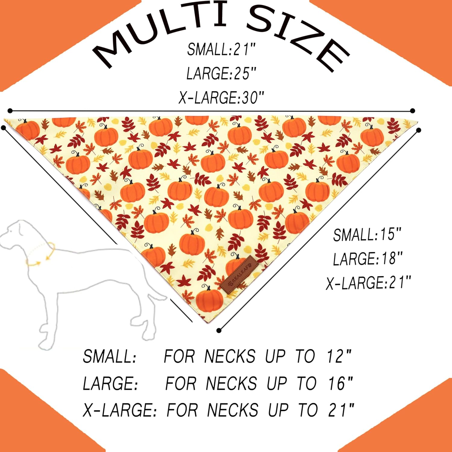 - [ THANKSGIVING DESIGN ]:Featuring Thanksgiving pattern with pumpkins and leaves. These bandanas add a cute and stylish touch to your furry friend's look.