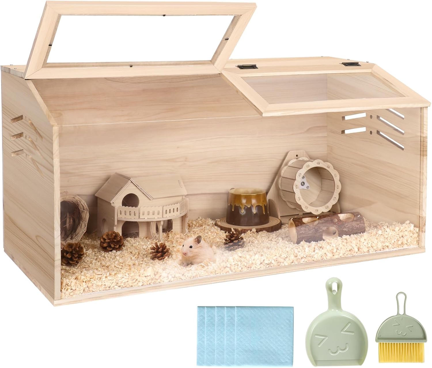 - Durable & Chewproof Material --- Constructed with high-quality, chewproof wood, this hamster cage is designed to withstand the relentless gnawing of small pets. Its sturdy construction not only enhances durability but also ensures a safe habitat, giving pet owners peace of mind that their furry friends are secure and protected.