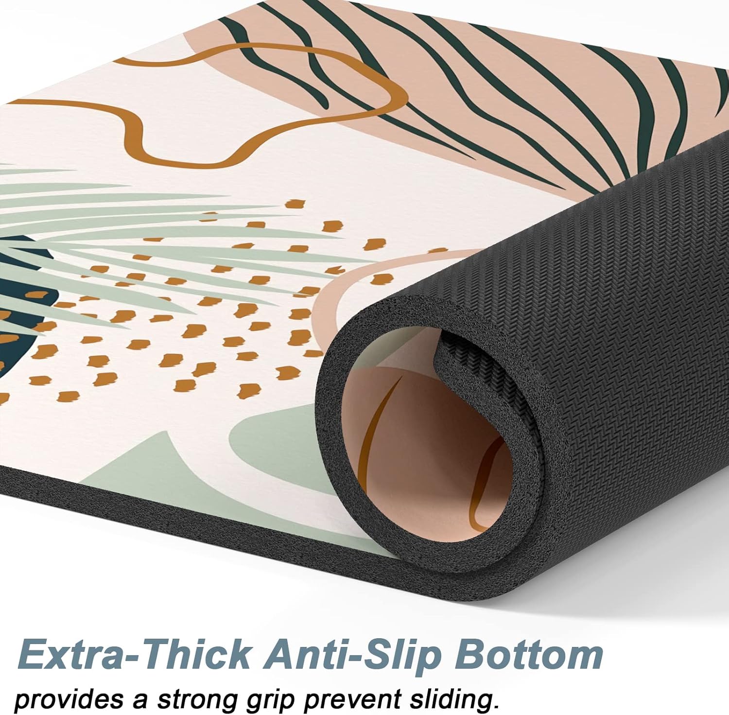 Rnivvi Dog Food Mat, 12" x 19" Boho Absorbent Dog Cat Bowl Mat for Food and Water, 3MM Anti-Slip Rubber Pet Feeding Rug Protect Floors, Puppy Placemat for Feeding & Watering Supplies, Tropical Leaves