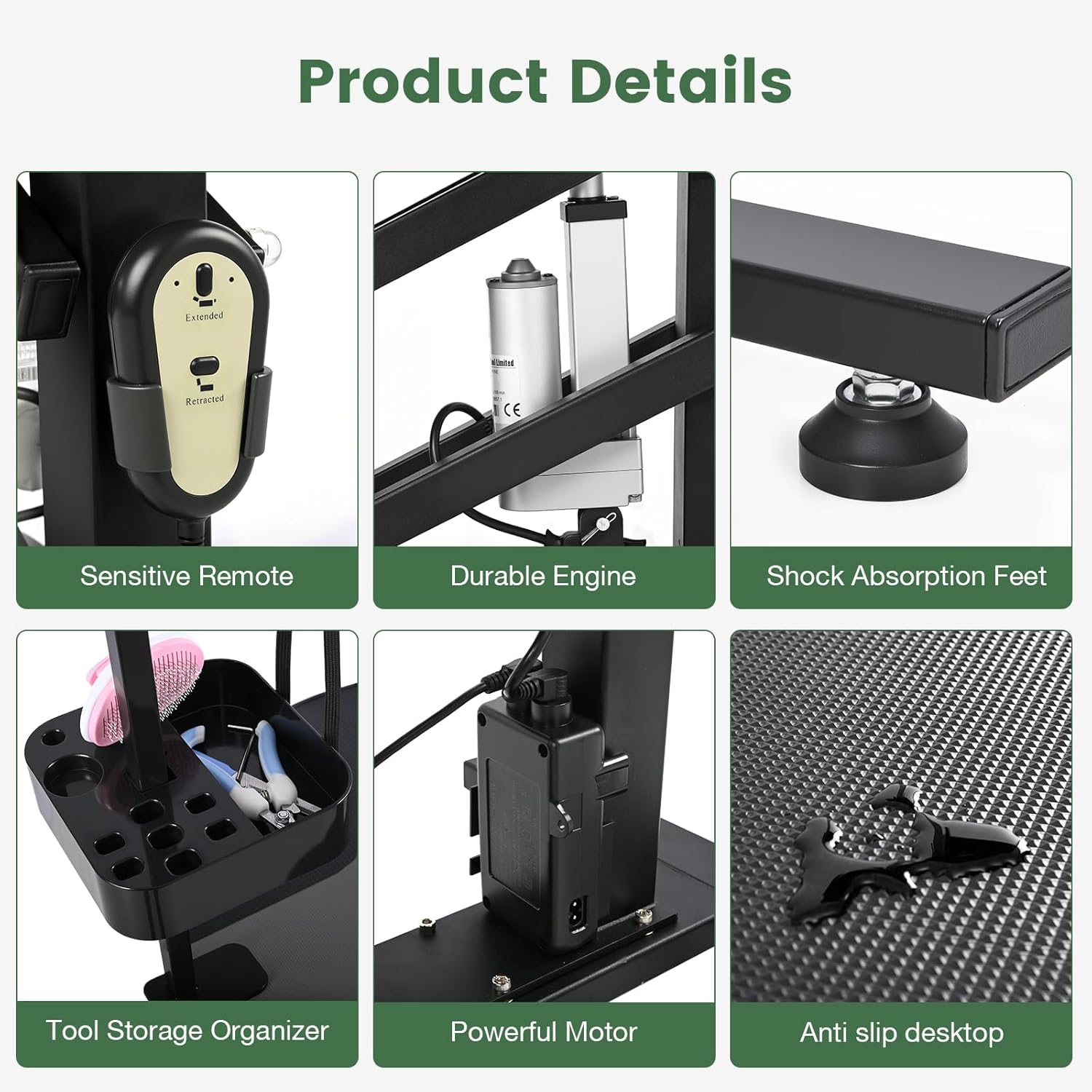 - 【Fast Lift Mechanism】The electric lift function allows you to adjust the height from 27 to 39 inches quickly and easily, making it perfect for groomers of all heights and ensuring comfort for your furry friend.