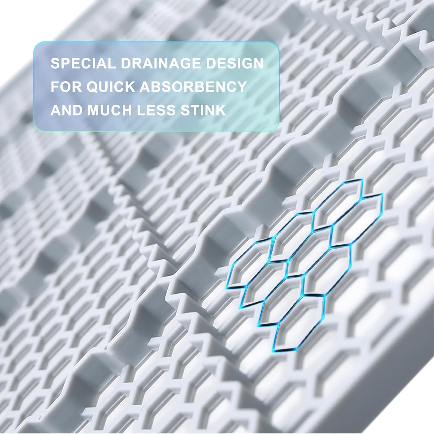 - Sturdy Grate : The plastic grate layer keeps the dog turf separated from the pee pad. The holes are well spaced so the pee goes straight through to the pee pad. The grate is a sturdy, heavy duty plastic.