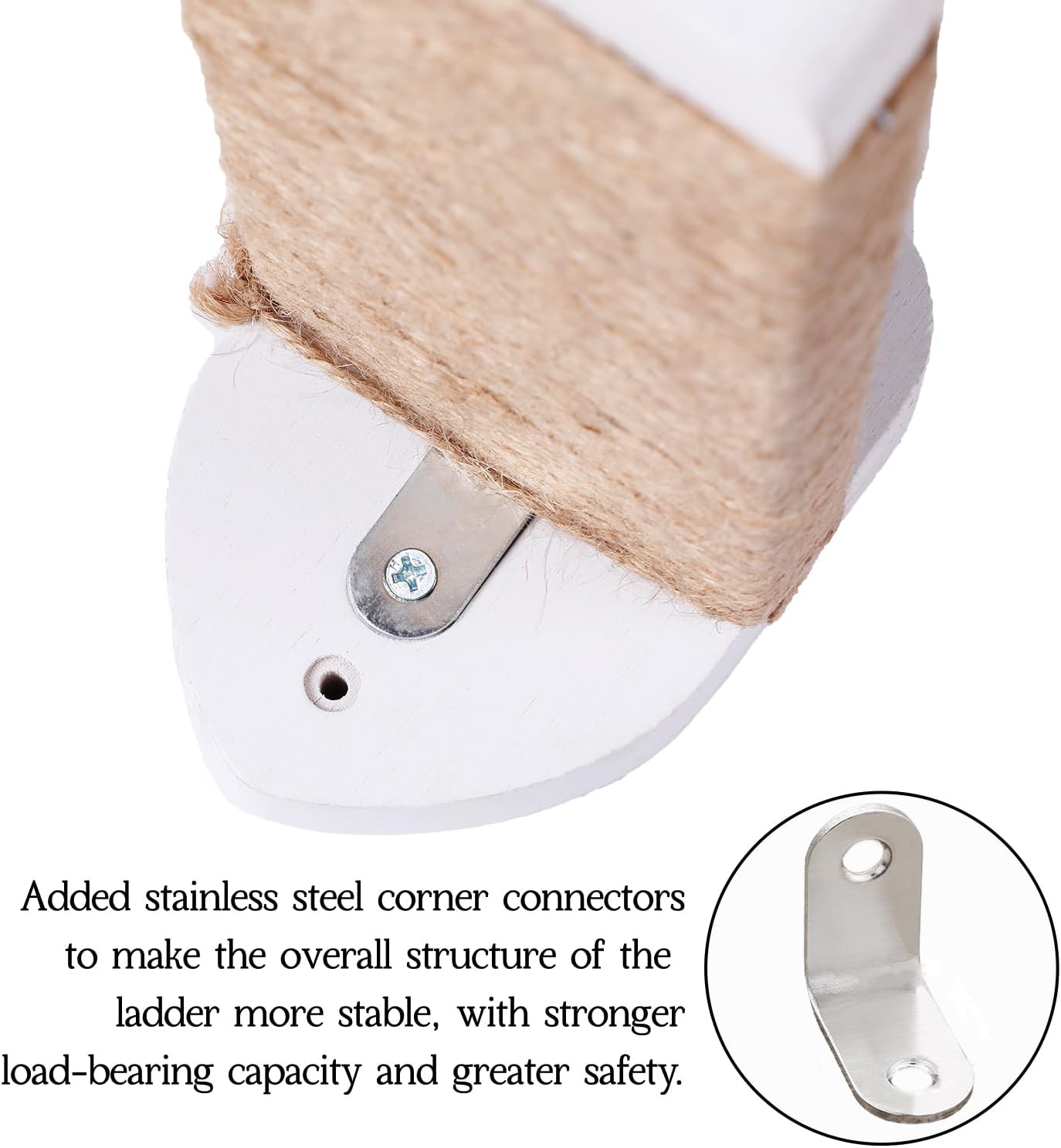 3pcs Wall Mounted Cat Steps, Climbing Furniture, Shelves With Hemp Rope Covered, Solid Wood Ladder for Playing and Climbing (Standard-White)