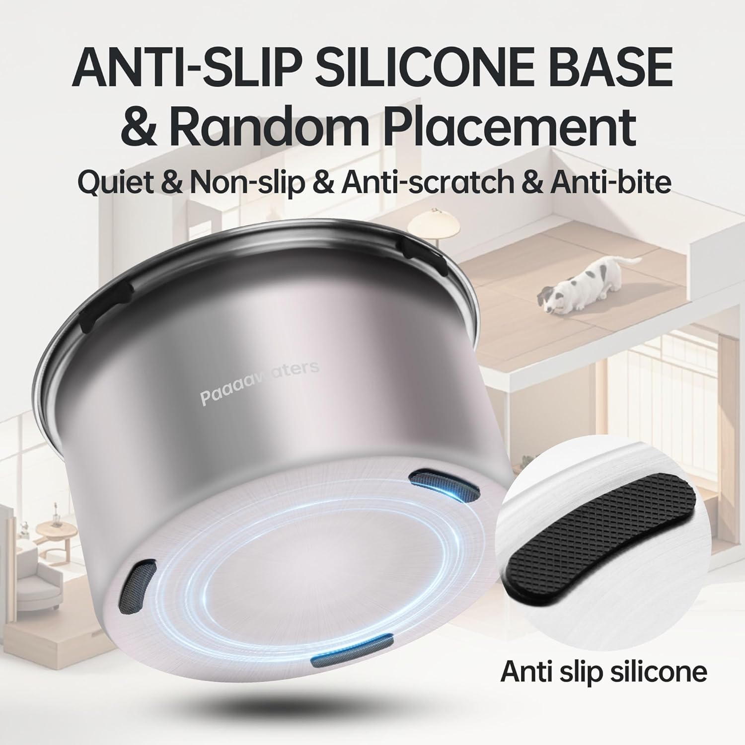- Made of 304 Food Grade Stainless Steel: Our dog water feeder made of sturdy 304 food grade stainless steel, our dog water bowl dispenser is crafted in one piece for sturdiness. It features a floating plate that resists dirt, plus a non-slip base to prevent sliding.