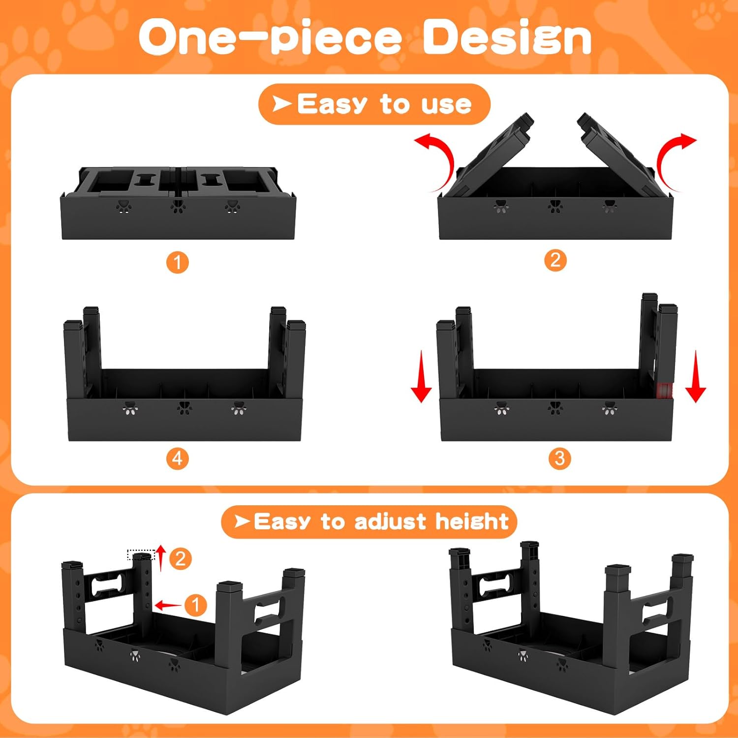 - 🐾【No Installation & Folds Up Nice for Traveling】:The foldable legs make this stand ultra-portable and space-saving for home or travel. No assembly needed—simply unfold the legs, press down, and it’s ready to use! Adjusting the height is effortless: press the white button and pull the legs to your desired height.