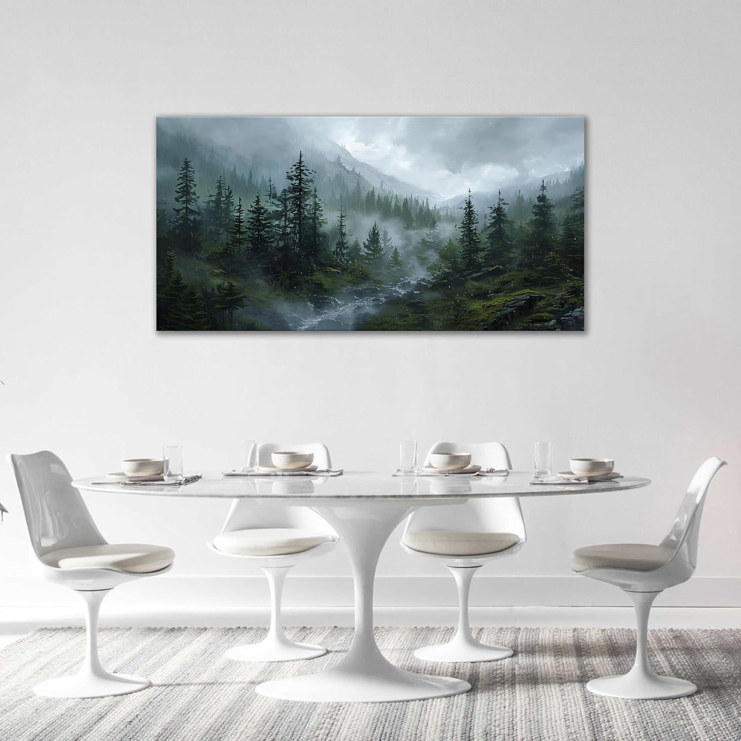 Large Forest Wall Art Nature Misty Mountain Canvas Living Room Tree Landscape Pictures Framed Prints Oversize Wall Decor Painting Artwork for Bedroom Dining Home 60"x30"