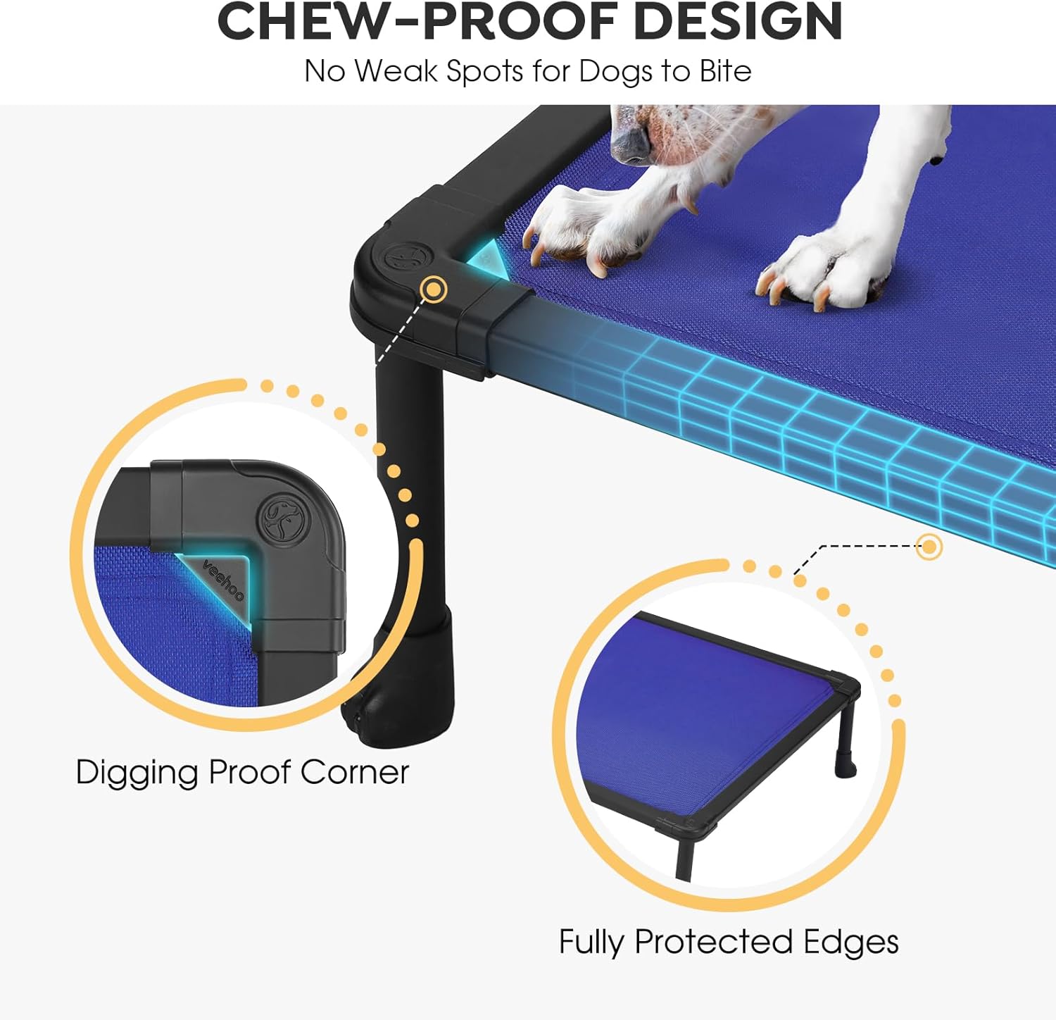Veehoo Chew Proof Dog Bed, Non-Chewable Cot for Large Dogs, Anti-Scratch Durable Hammock Raised Place for Training Platform, Outdoor Cooling Off Ground, CWC2420ACP