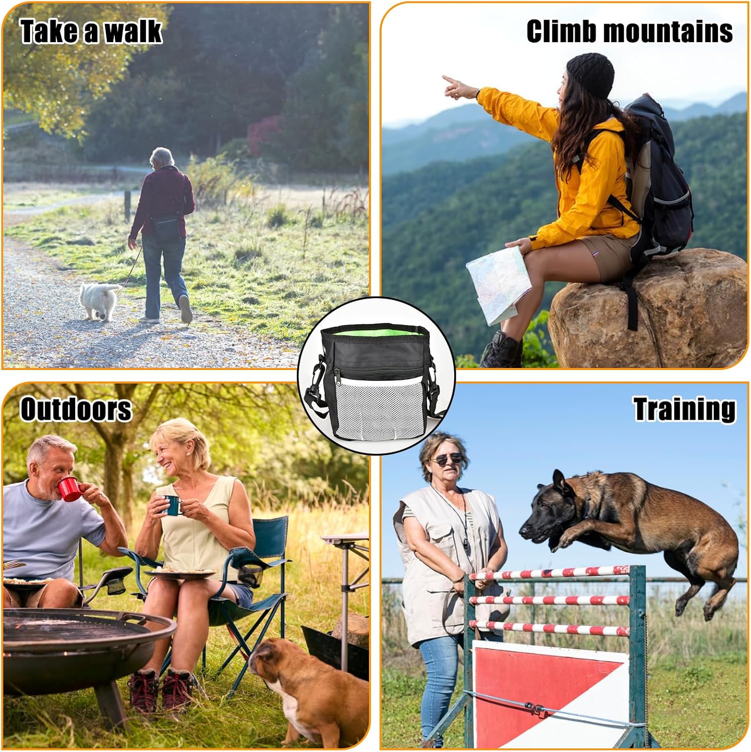 - Dog Treat Pouch Set: The set includes 1 multipurpose dog training bag, 1 collapsible dog bowl, 1 dog training clicker, 1 waist strap and 1 shoulder strap. Suitable for training dogs, walking dogs, traveling with dogs, playing with dogs, etc