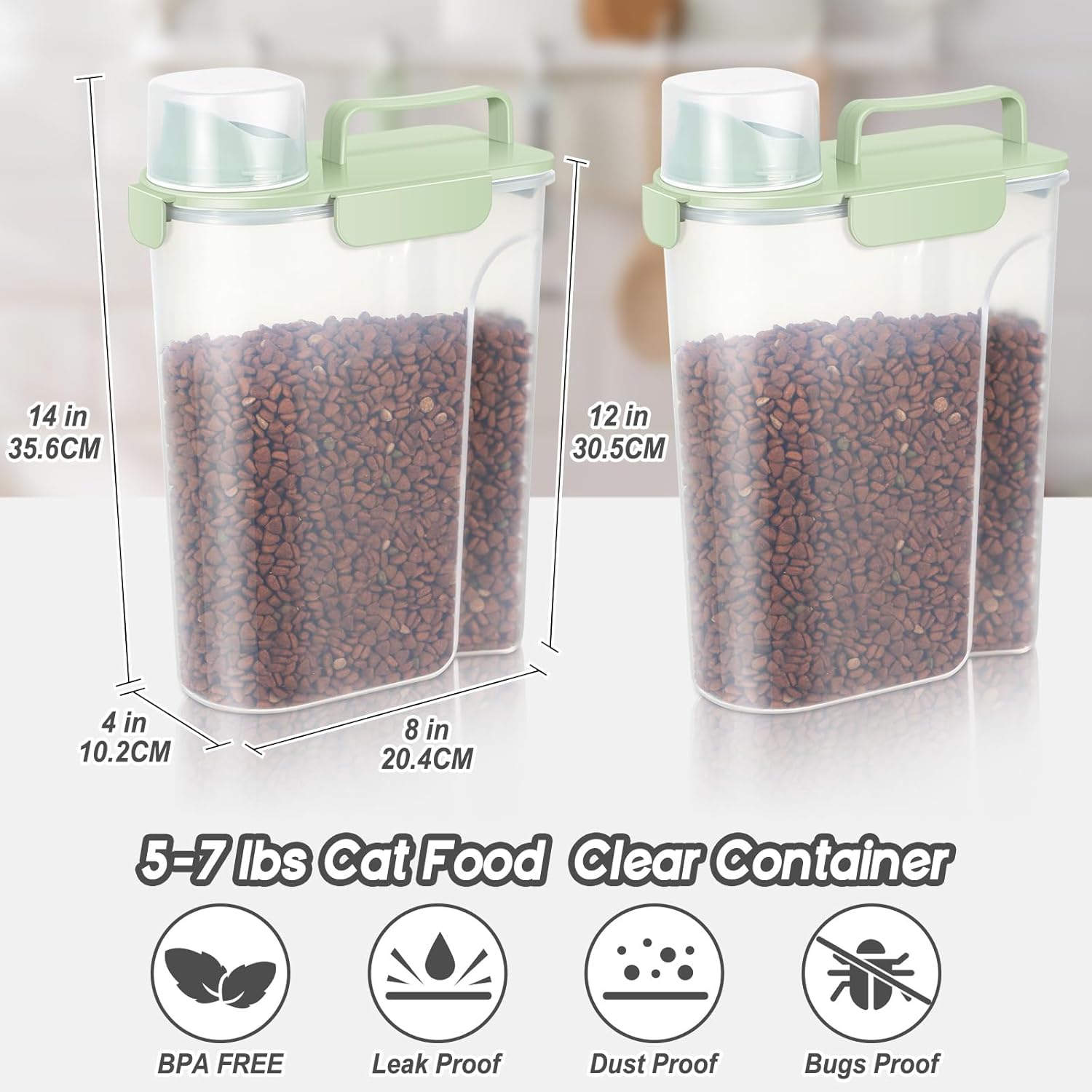 5-7Lbs Dog Cat Food Storage Container with Upgraded Large Nozzle BPA-free, 4 Snap Seals Plastic Pet Food Storage Containers with Handles (2, Light Green, 5L)