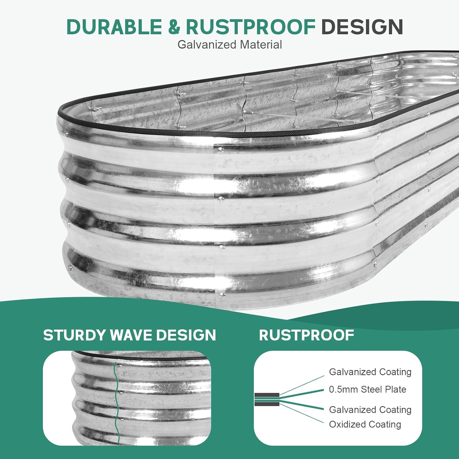 Galvanized Raised Garden Bed - 8×2×1ft Planter Raised Beds for Gardening | Oval Metal Garden Planter Box with Safety Edging and Bracing Rods for Vegetables Fruits and Flowers - Silver