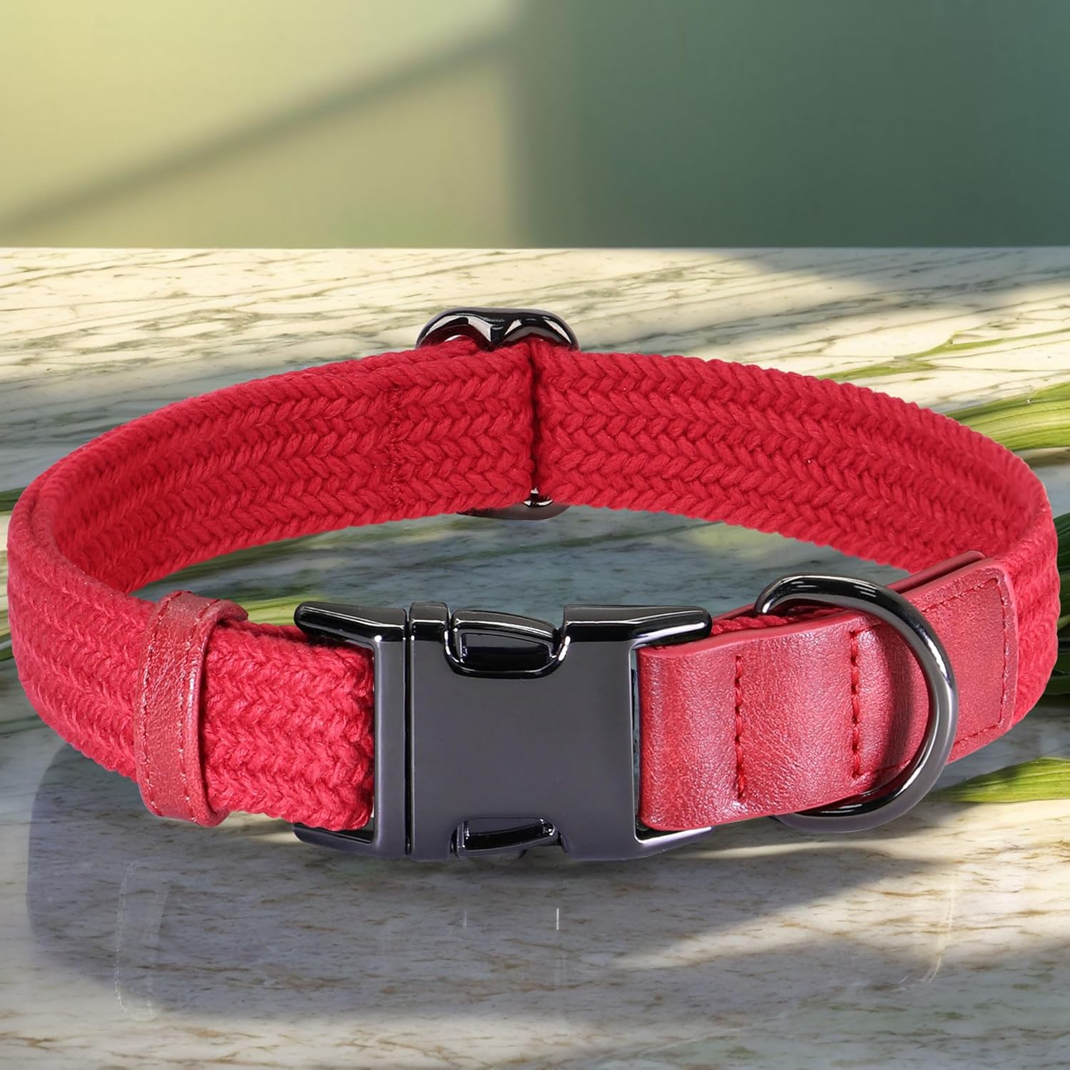 PET ARTIST Soft Cotton Dog Collar for Small Dogs in Glamorous Red, Simple Dog Collar with Quick Release Metal Buckle & D Ring, S Size (10-16")