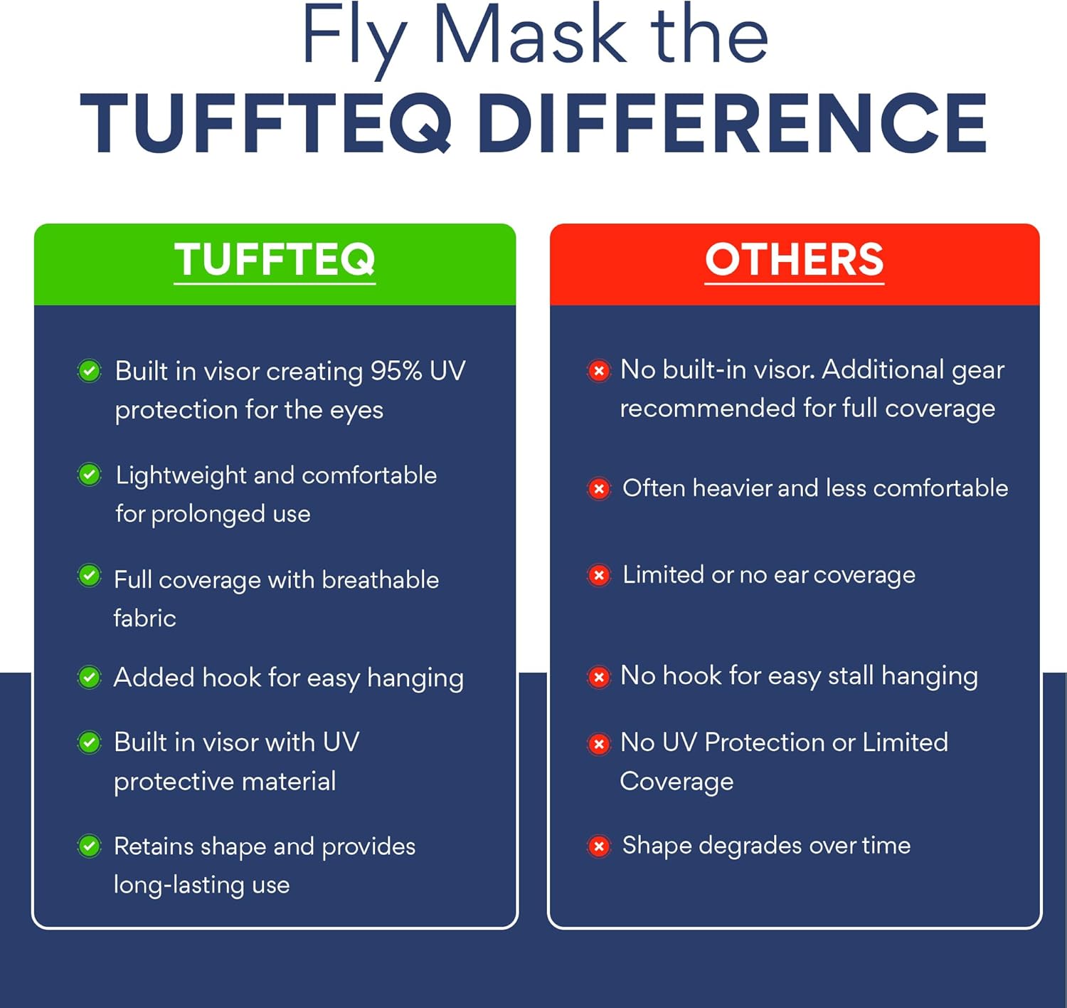 - ๐๐ฎ๐ข๐ฅ๐ญ-๐๐ง ๐๐ข๐ฌ๐จ๐ซ ๐๐จ๐ซ ๐๐ง๐ก๐๐ง๐๐๐ ๐๐ ๐๐ซ๐จ๐ญ๐๐๐ญ๐ข๐จ๐ง: The TUFFTEQ Horse Fly Mask Without Ears Plus Size features a built-in visor designed to block harmful UV rays. This provides extra shade and reduces glare, offering enhanced protection for your horseโs eyes and face during long hours outdoors.