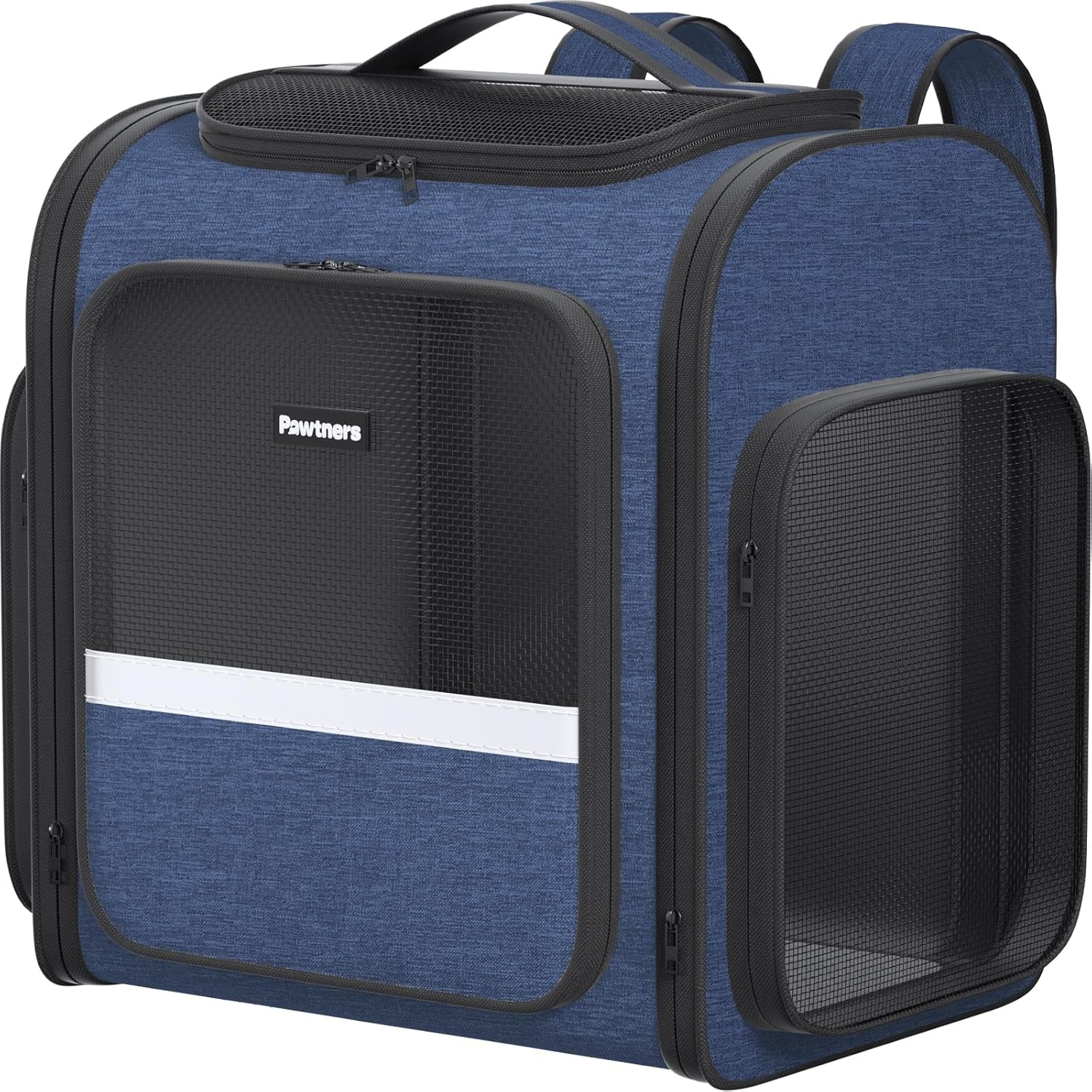 Pawtners Dog Backpack Carrier Dog Carrier with Anti-Scratch Mesh with Great Ventilation, Large Pet Carrier Backpack for Small Dogs & Large Cats, Foldable Designed Pet Backpack Perfect for Travel