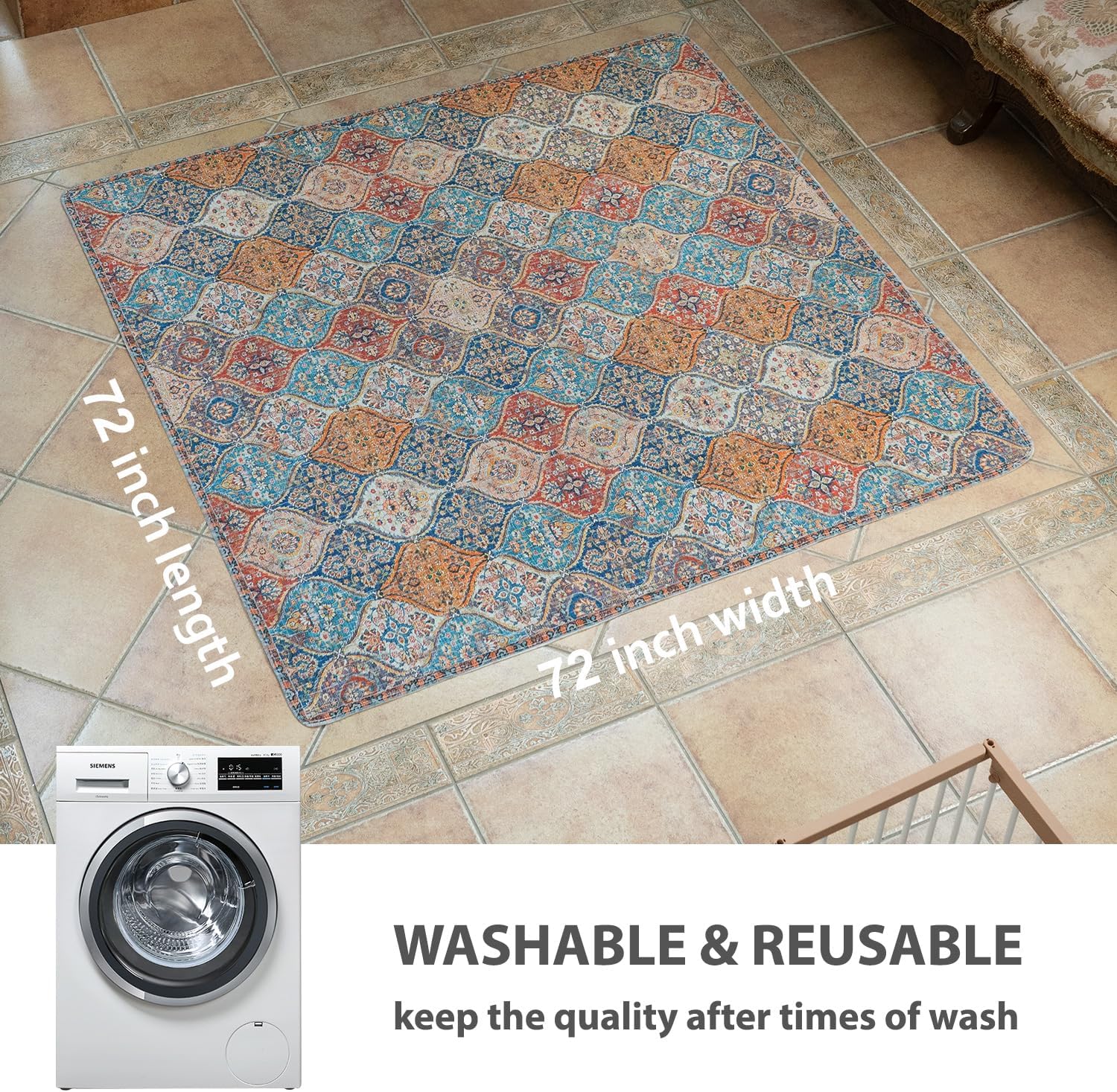 nunubaby Washable Pee Pads for Dogs, Stylish, Non-Slip and Leak-Proof Pee Pads. Reusable Potty Pads for Dogs for Crates and Floors.(Cream/Multi, 72" x72" )