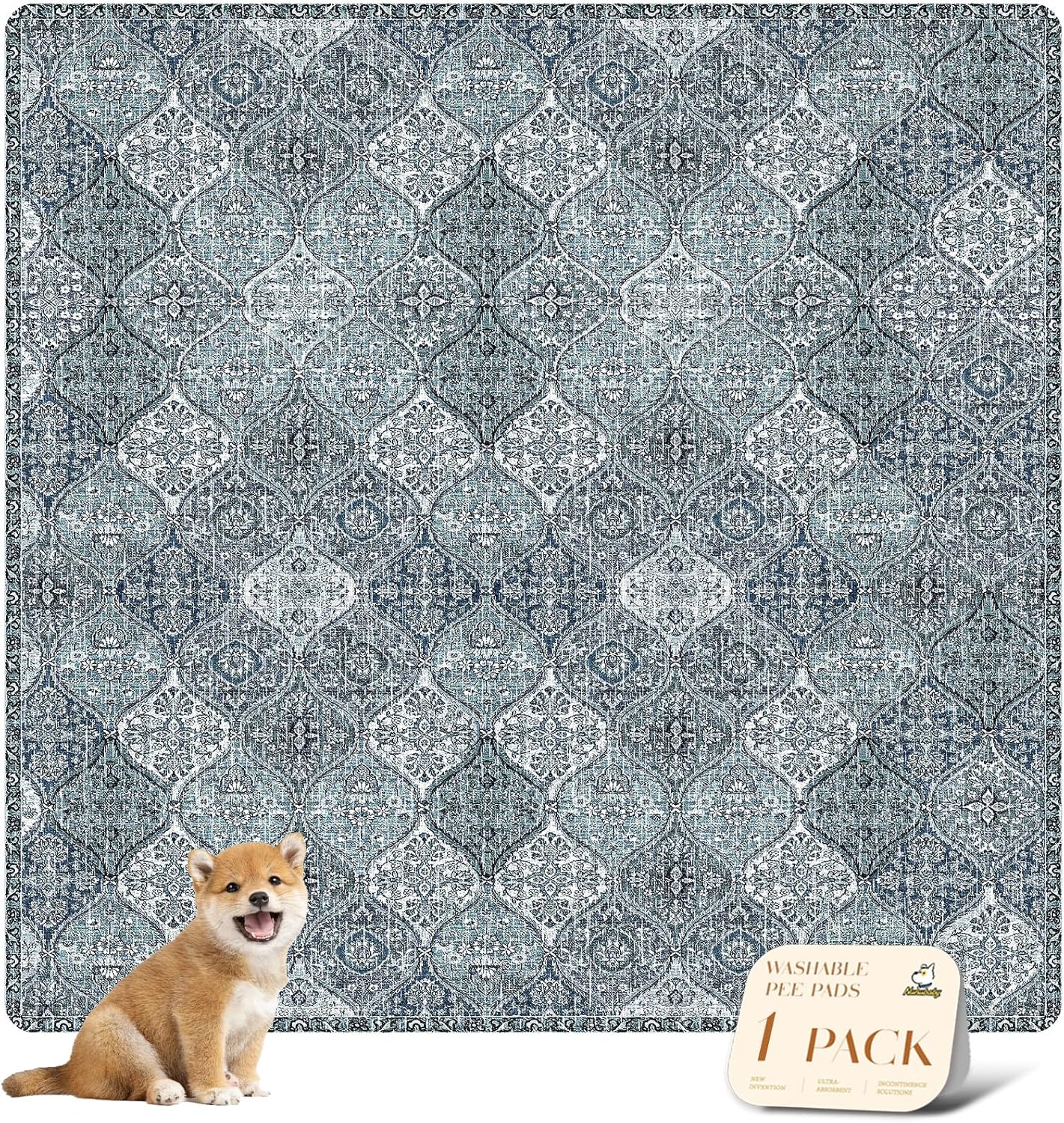 nunubaby Washable Pee Pads for Dogs, Stylish, Non-Slip and Leak-Proof Pee Pads. Reusable Potty Pads for Dogs for Crates and Floors.(Blue/Multi, 72" x72" )