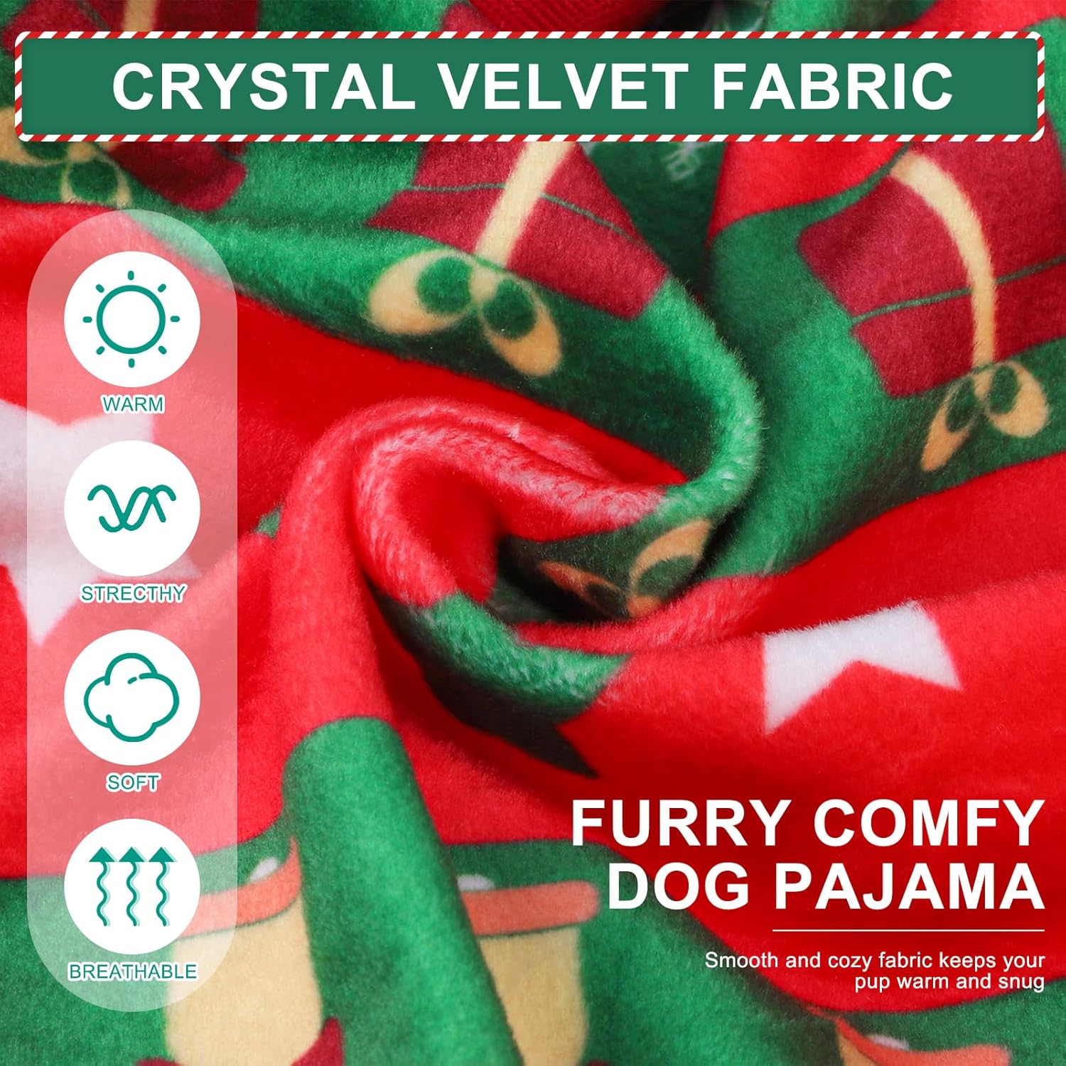 - High-quality Material: Our dog pajama use premium crystal velvet fabric that is soft, comfortable, and non-irritating, giving your pet the ultimate comfort. At the same time, this fabric has excellent insulation properties, effectively blocking out cold air and providing a warm environment for your pet.