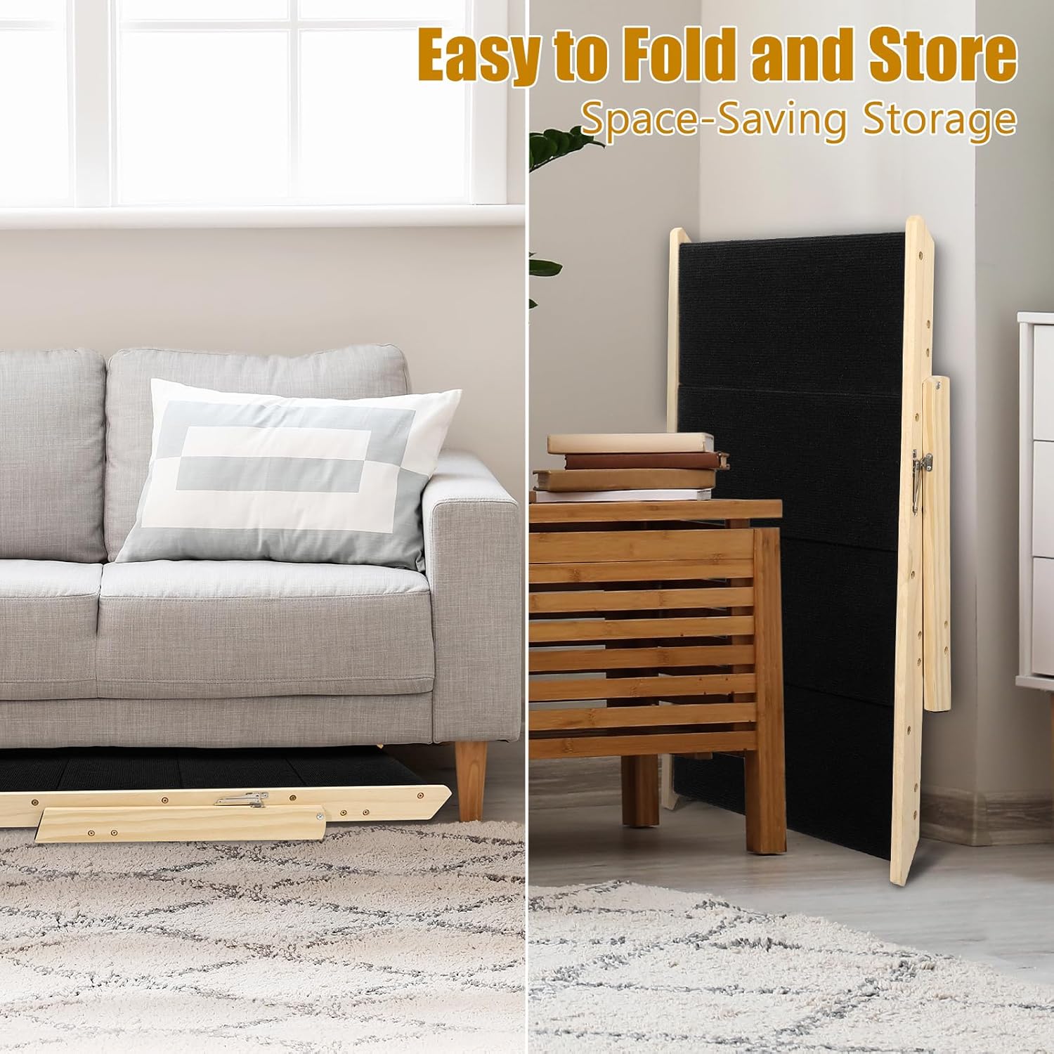 - Foldable and Easy to store: This space-saving pet ladder can be folded to a depth of 3.5 feet inches and can be easily moved, transported, and stored for convenient access
