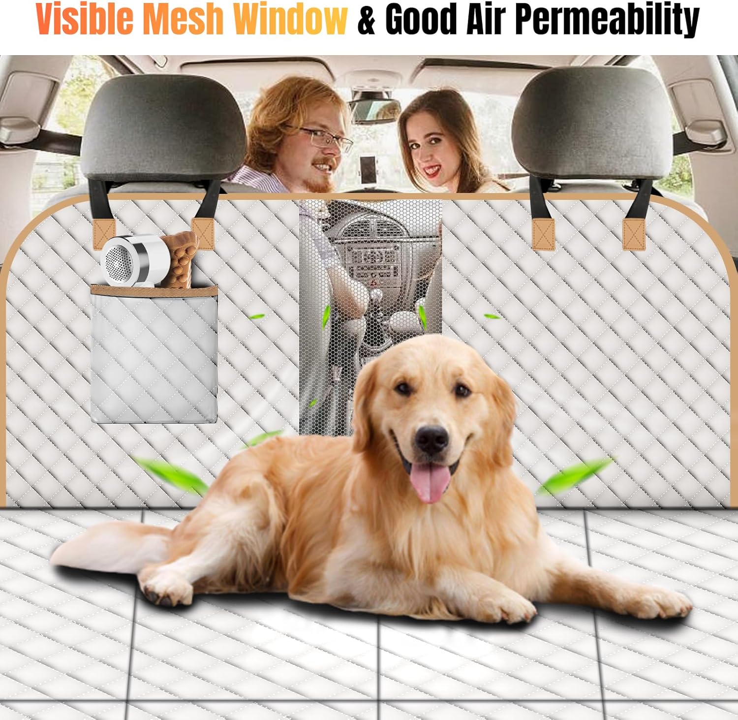 Dog Car Seat Cover for Back Seat, Dog Car Bed Cover with Strong Hard Bottom, Car Back Seat Extender Hammock for Car SUV Truck 4 Panels Beige Color