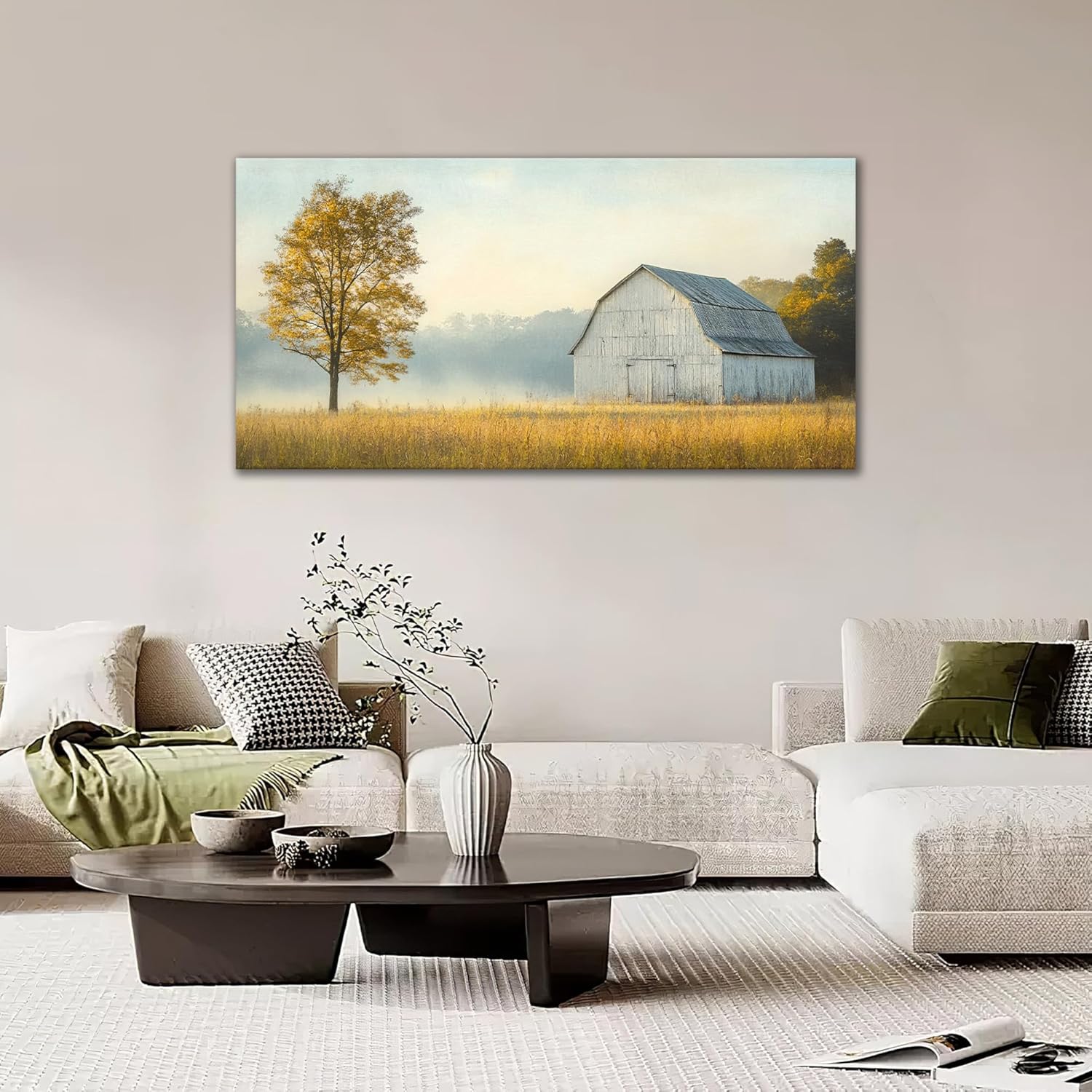 Large Farmhouse Barn Wall Art Country Landscape Canvas Living Room Rustic Tree Pictures Framed Prints Oversize Wall Decor Painting Artwork for Bedroom Dining Office Home 60"x30"
