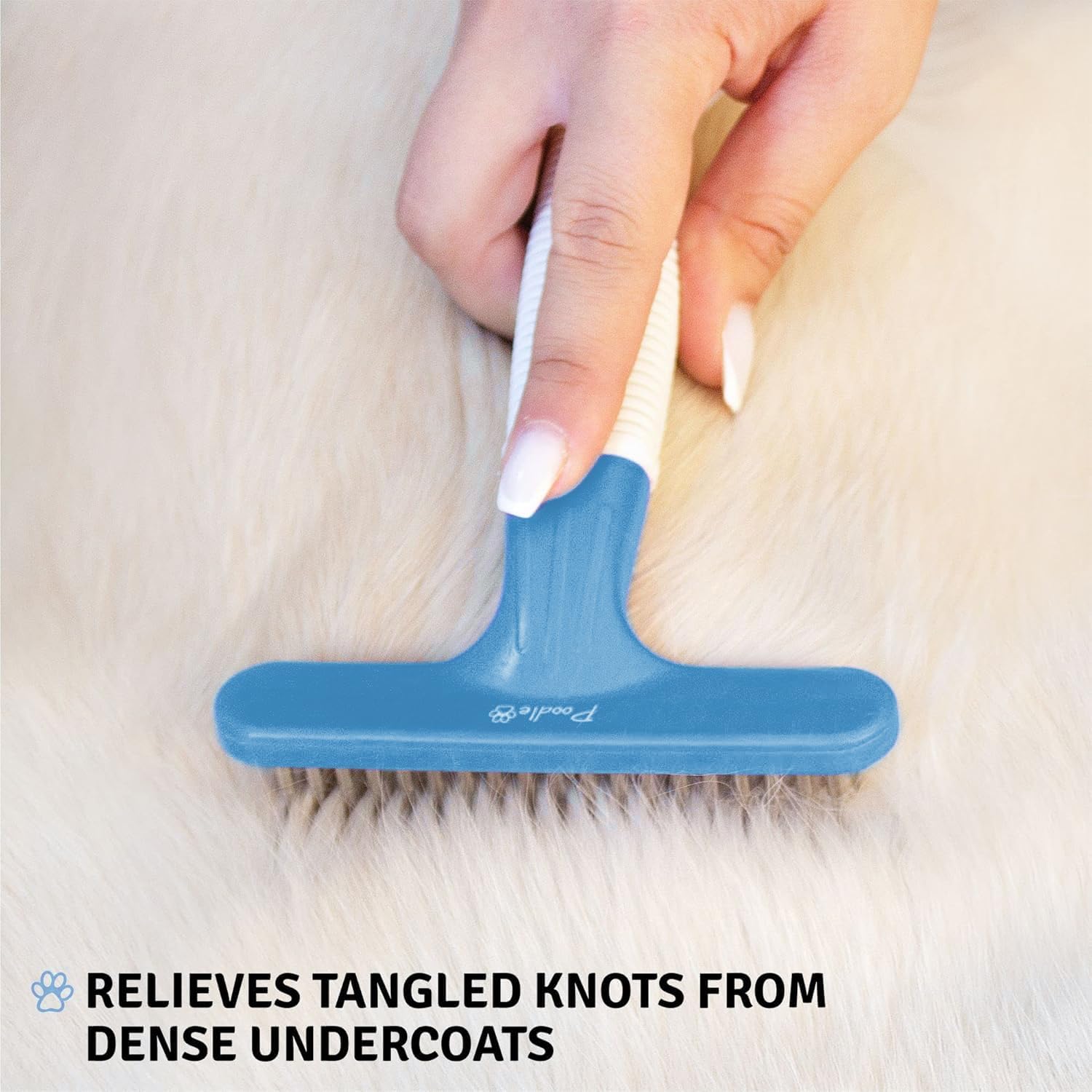 - REDUCE SHEDDING BY UP TO 90% AFTER ONE SESSION: The Poodle Pet rake features smooth, rounded pins that penetrate deep into your dog's coat to remove loose undercoat. While you cannot stop a healthy dog from normal shedding, you can reduce the amount of hair in your home by brushing your dog regularly with the Poodle Pet Dog Rake.