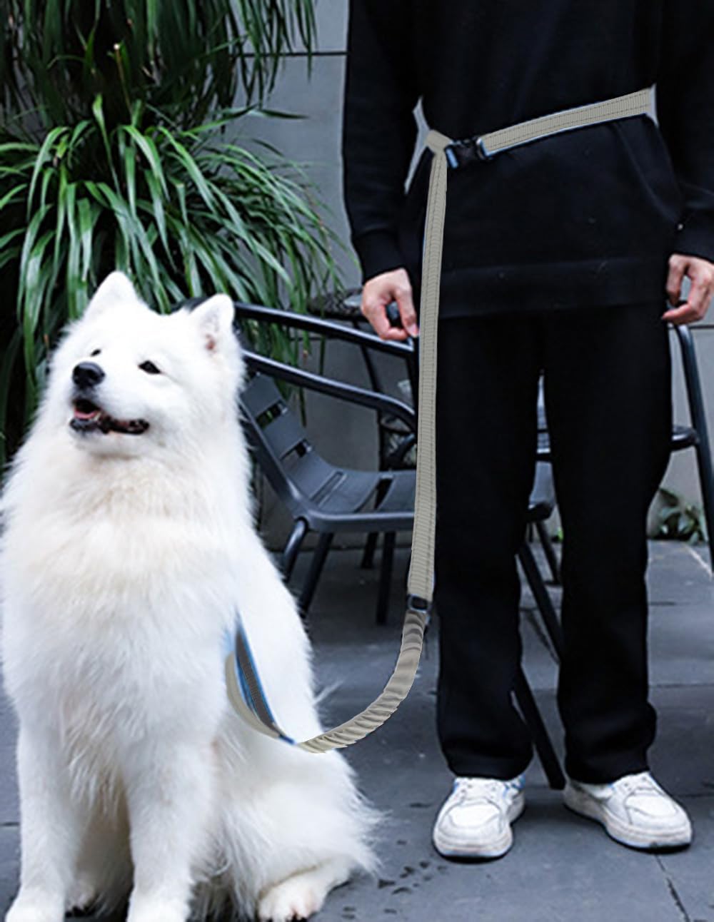 - Hands Free Dog Leash: When you walk your dog, you can attach the leash to your belt or your shoulder and you have your hands completely free to do your own thing. You can freely enjoy your phone, drinking or reading. This leash is adjustable and you can adjust it with buckle. Besides, the waist leash for dog walking is thick padded to reduce pressure on the body