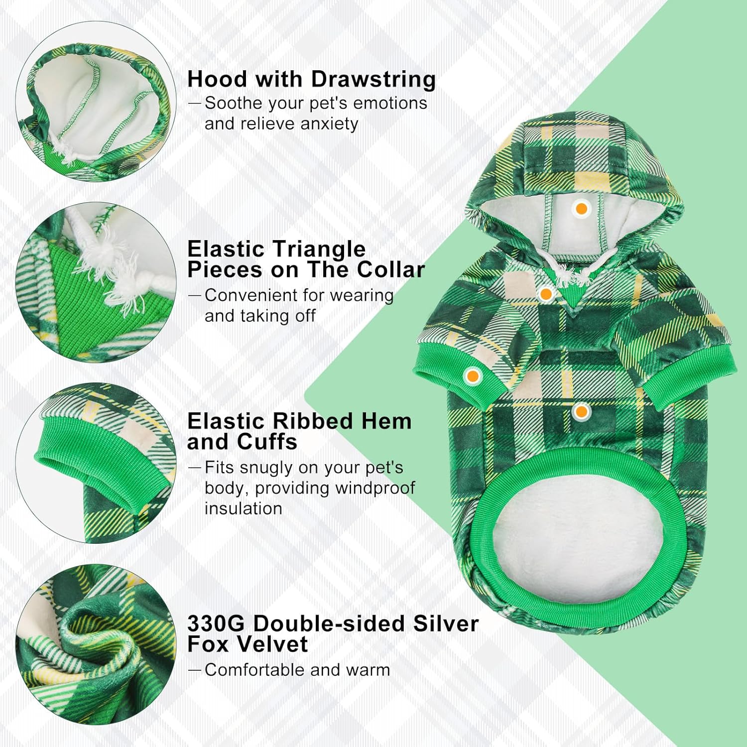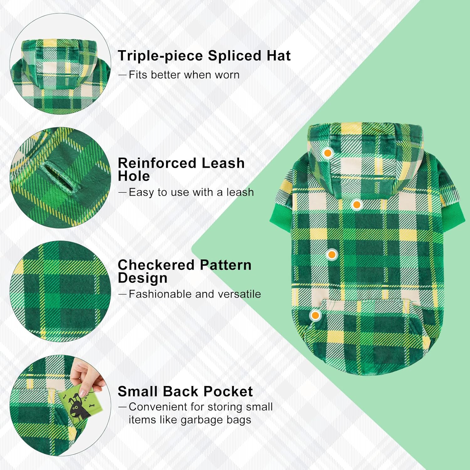 - Stylish & Practical Look: This plaid dog hoodie boasts a classic vintage check pattern that makes your pup stand out! Includes a handy back pocket for storing treats, toys, or waste bags. reinforced leash hole adds safety and durability—perfect for walks, running, hiking, training, or festive occasions like Christmas, Thanksgiving, photo shoots, and birthday parties