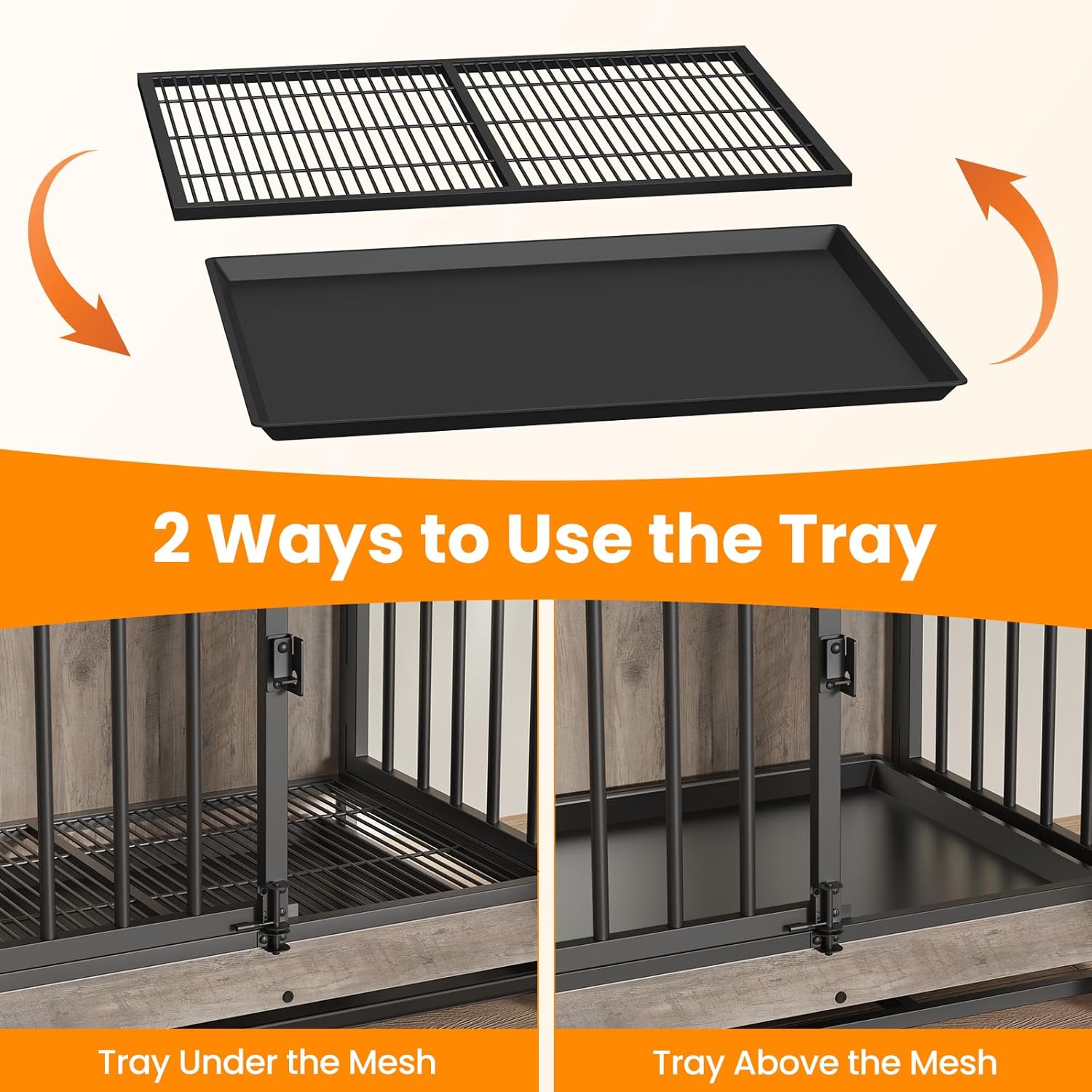- 🐶【Versatile Tray Usage】Put the tray under the bottom mesh to catch crumbs, fur, and dirt, keeping your dog's place clean without dirtying your floor, maintaining a tidy living space for your pet, or place the tray above the mesh to offer your dog a flat, comfortable surface—it's up to you