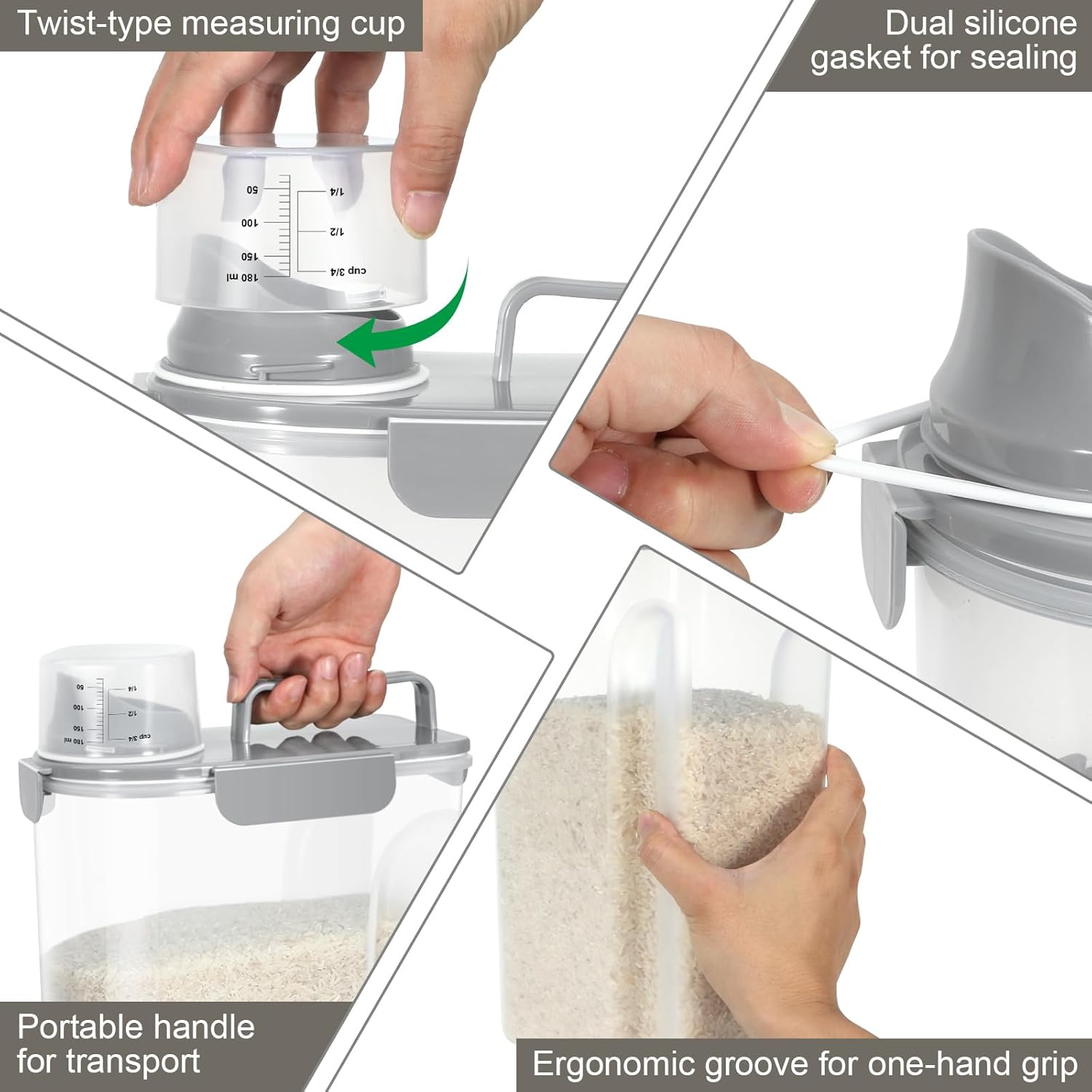 - AIRTIGHT SEAL RICE STORAGE: The side-locking lids with silicone seal keep out moisture, always keeping your food super fresh and dry