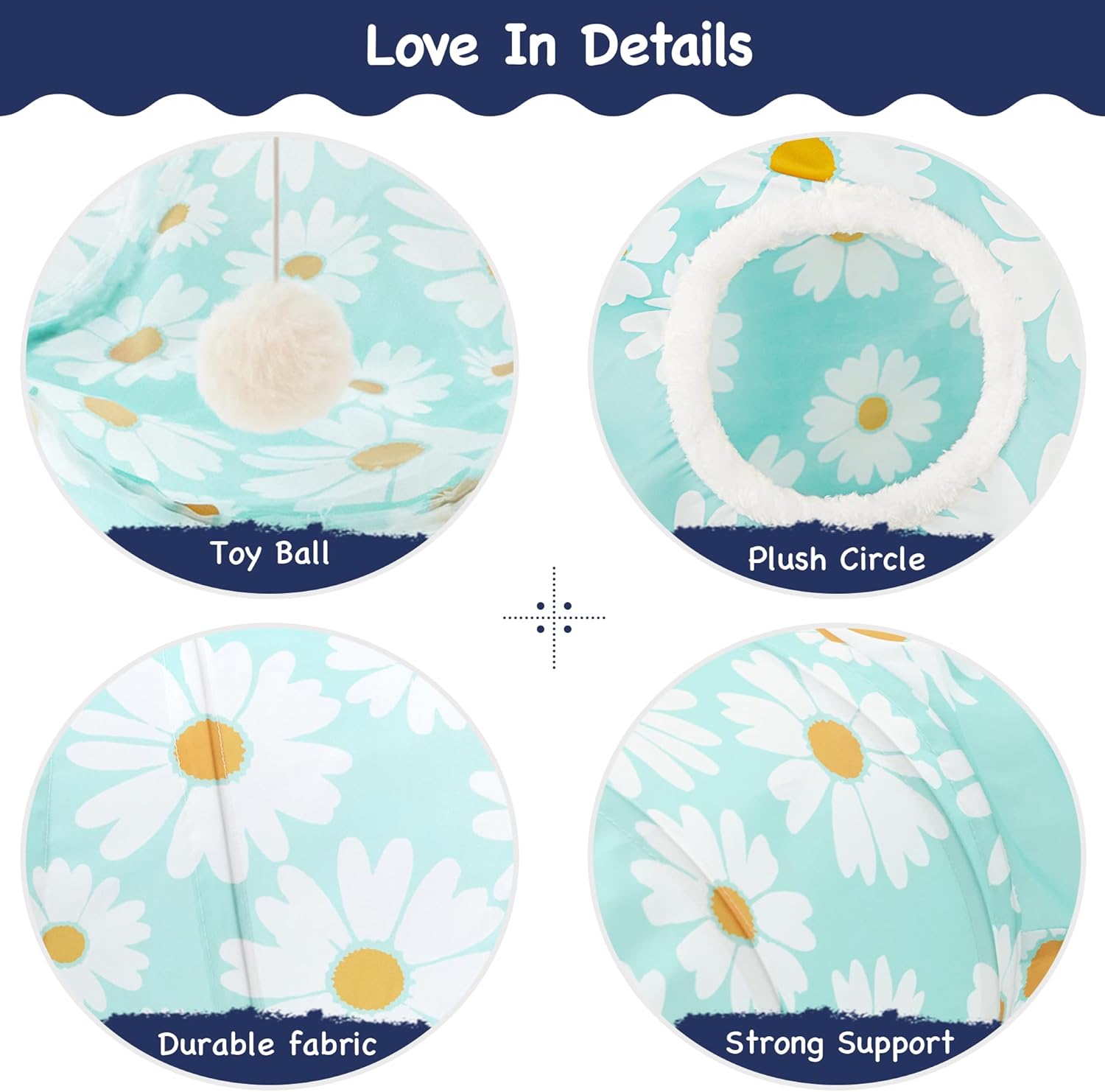 Tempcore Pet Cat Tunnel Tube Cat Toys 3 Way Collapsible, Cat Tunnels for Indoor Cats,Kitty Tunnel Bored Pet Toys Peek Hole Toy Ball, Puppy, Kitty, Kitten, Rabbit Daisy Blue Printed