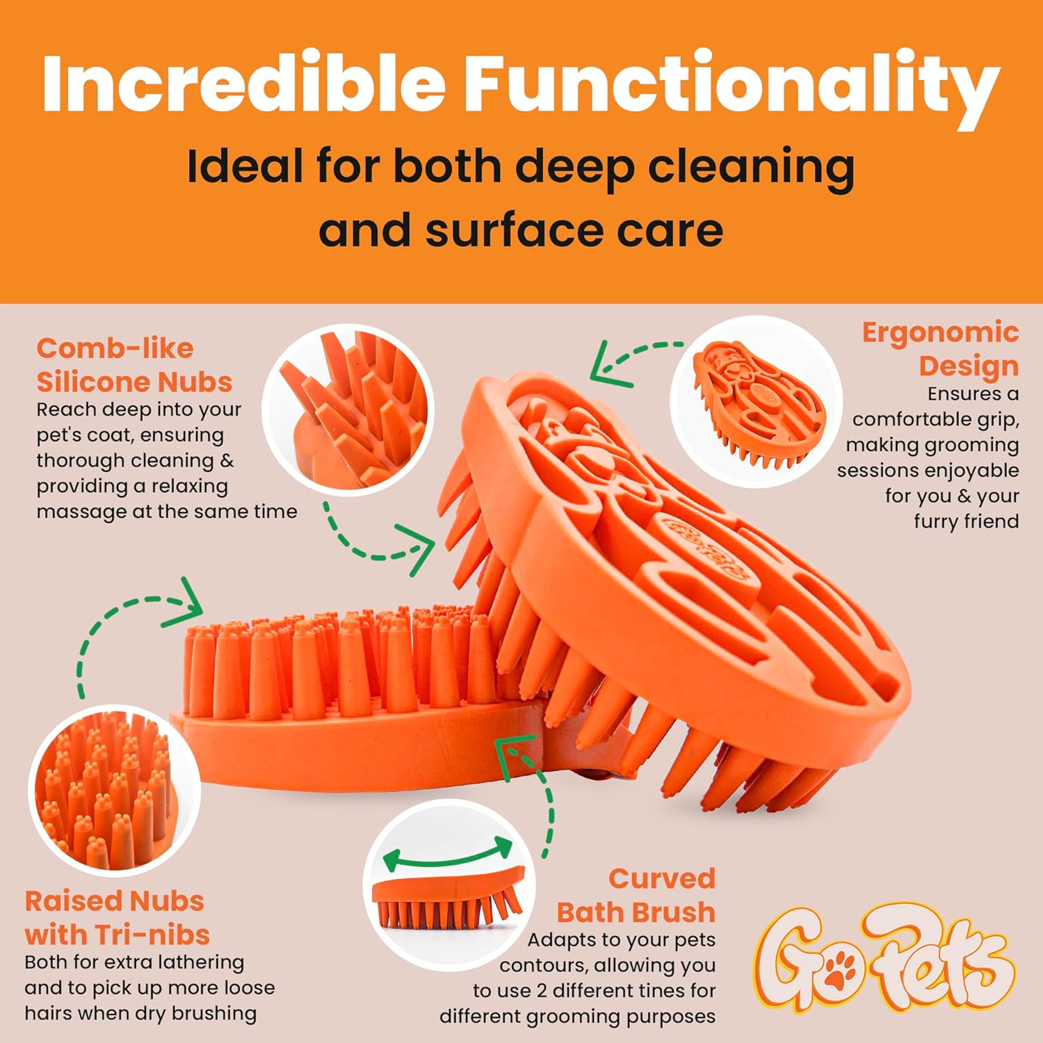 - BATH BRUSH FOR CLEANING & GROOMING - The Pet Wash Brush cleans and grooms with soft rubber nubs that remove dirt, debris, and loose fur. Ideal for both dogs and cats, it helps detangle coats while providing a comfortable, irritation-free bath experience.