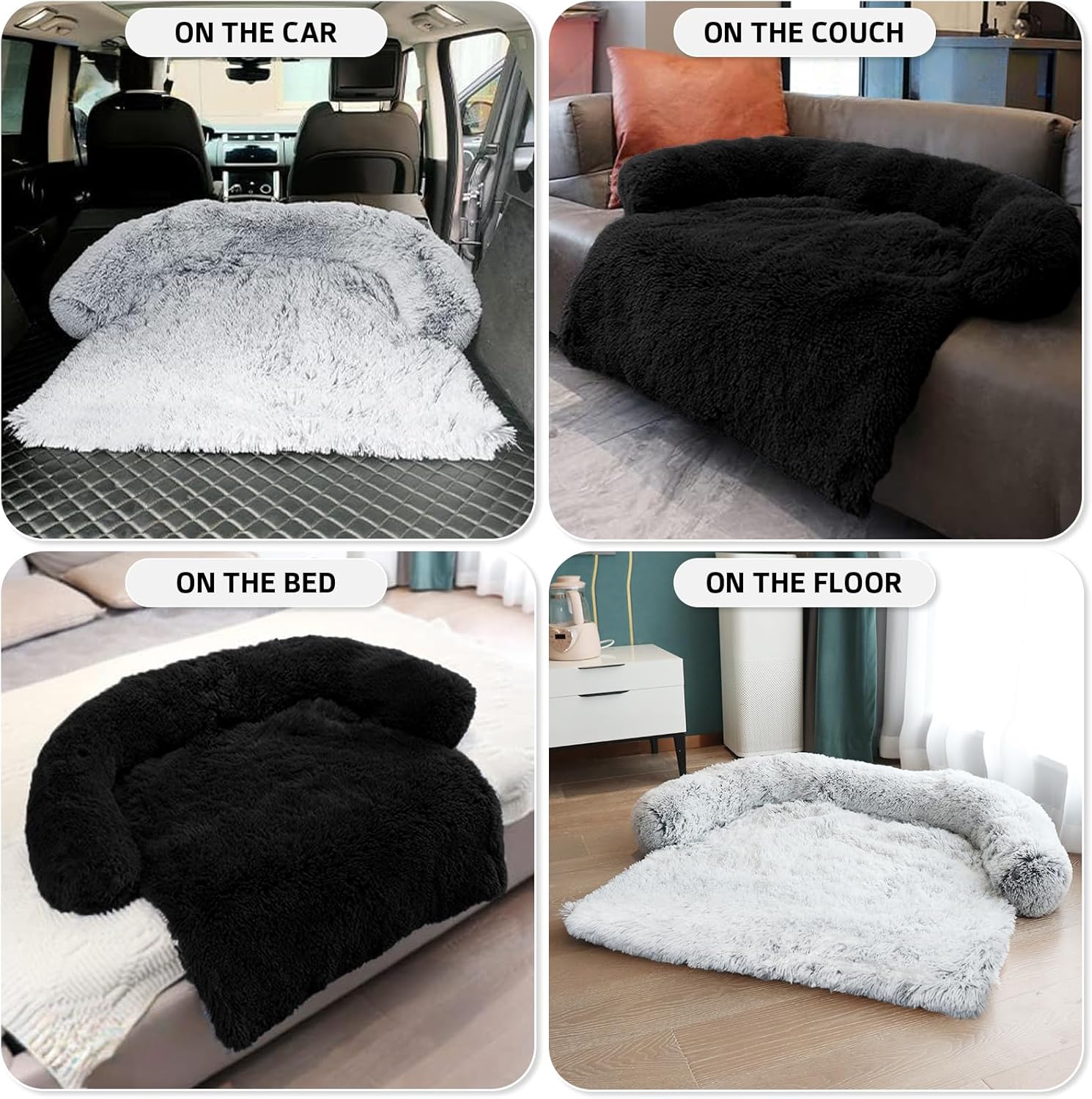 GGIB Calming Dog Bed Fluffy Plush Dog Mat for Furniture Protector with Removable Washable Cover for Large Medium Small Dogs and Cats (Medium, Black)