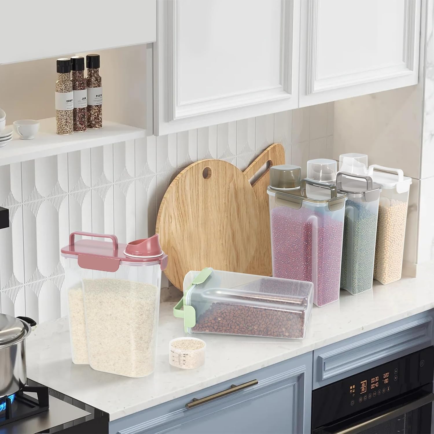 - MULTI-PUrRPOSE STORAGE:Our pet food container is suitable for storing dog food、cat food、bird seed、fish food、rice、 dry food、cereals、oats、cat litter 、flour and other large and small grains, as well as washing powder used at home. It is also a good choice.