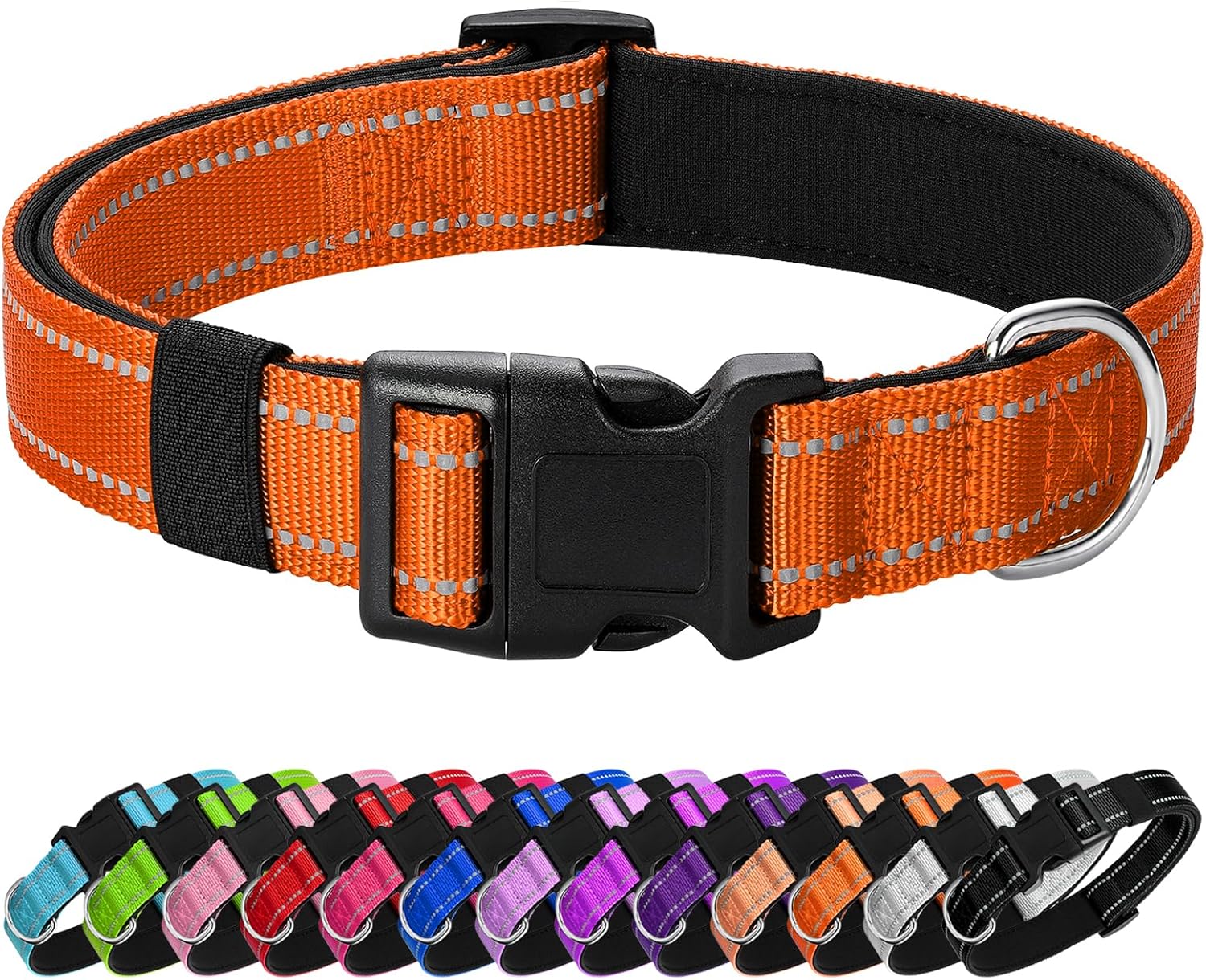 Reflective Dog Collar Padded with Soft Neoprene Breathable Quick Release Basic Dog Collars for Puppy Small Dogs Orange