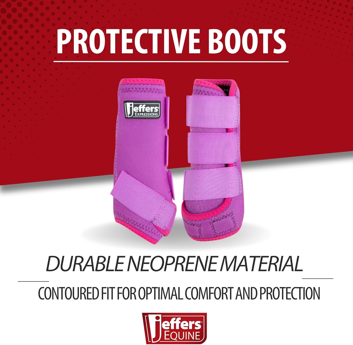 Jeffers Expression Neon Horse Boots 1 Pair - Purple & Pink, Breathable Neoprene, Secure Strap Closures, Durable Premium Protection for Jump Training & Trail Riding - Front & Hind, Large Size