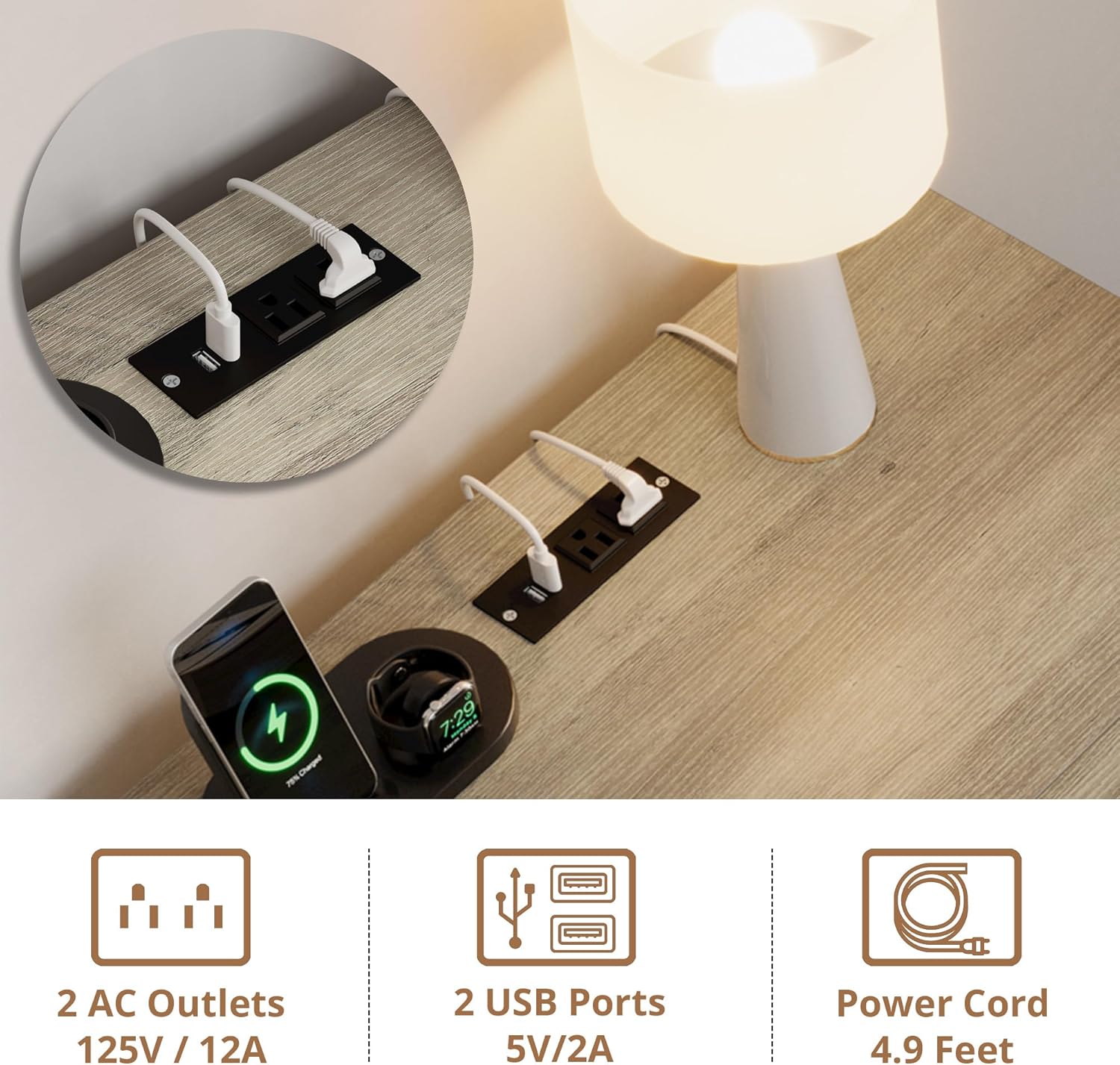 - CHARGING STATION & STORAGE: The top panel features a power strip with 2 USB ports and 2 AC outlets for charging your phones or your dog's electronic toys. The tabletop can hold a lamp, while the flip-top drawer keeps toys, accessories, and pet essentials organized and within reach