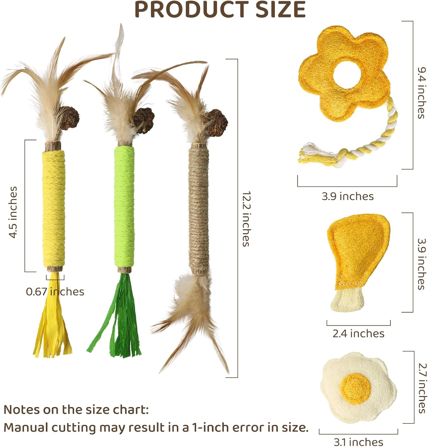 - Healthy Companion - Cat Chew Toy Set includes 3 silver vine sticks & 3 pieces of loofah.The silver vine sticks help cats clean their teeth,sharpen their bite,and develop proper chewing behavior while promoting healthy permanent tooth growth.The natural & durable loofah effectively cleans teeth,removes plaque and tartar,improves oral hygiene,and keeps breath fresh.This set is the perfect choice for maintaining your cat's dental health and strengthening your bond with your pet