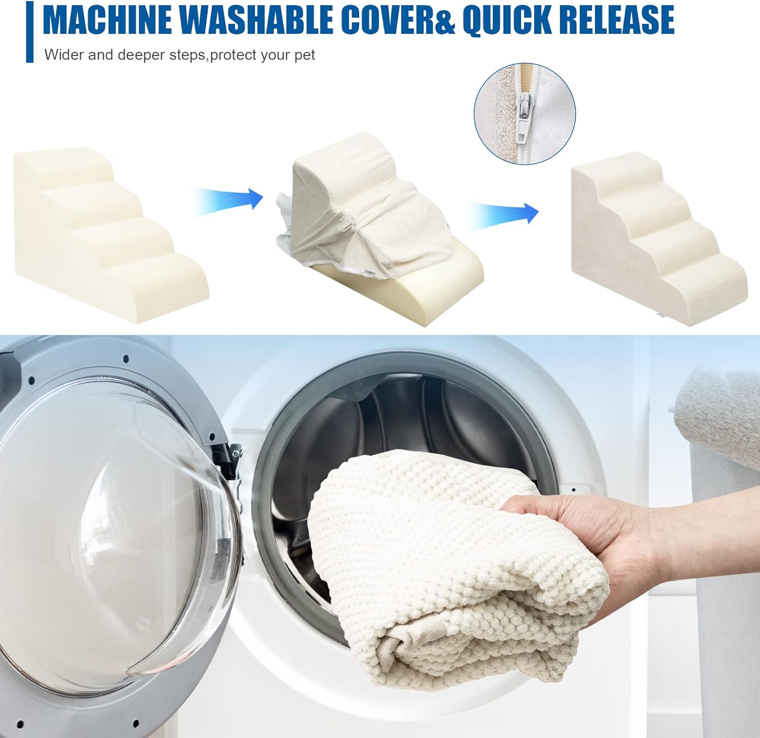 - Easy to Install and Clean: This pet step can be assembled and disassembled through simple steps. It is easy to clean. You can wash the removed cover by machine to keep the pet step clean and tidy