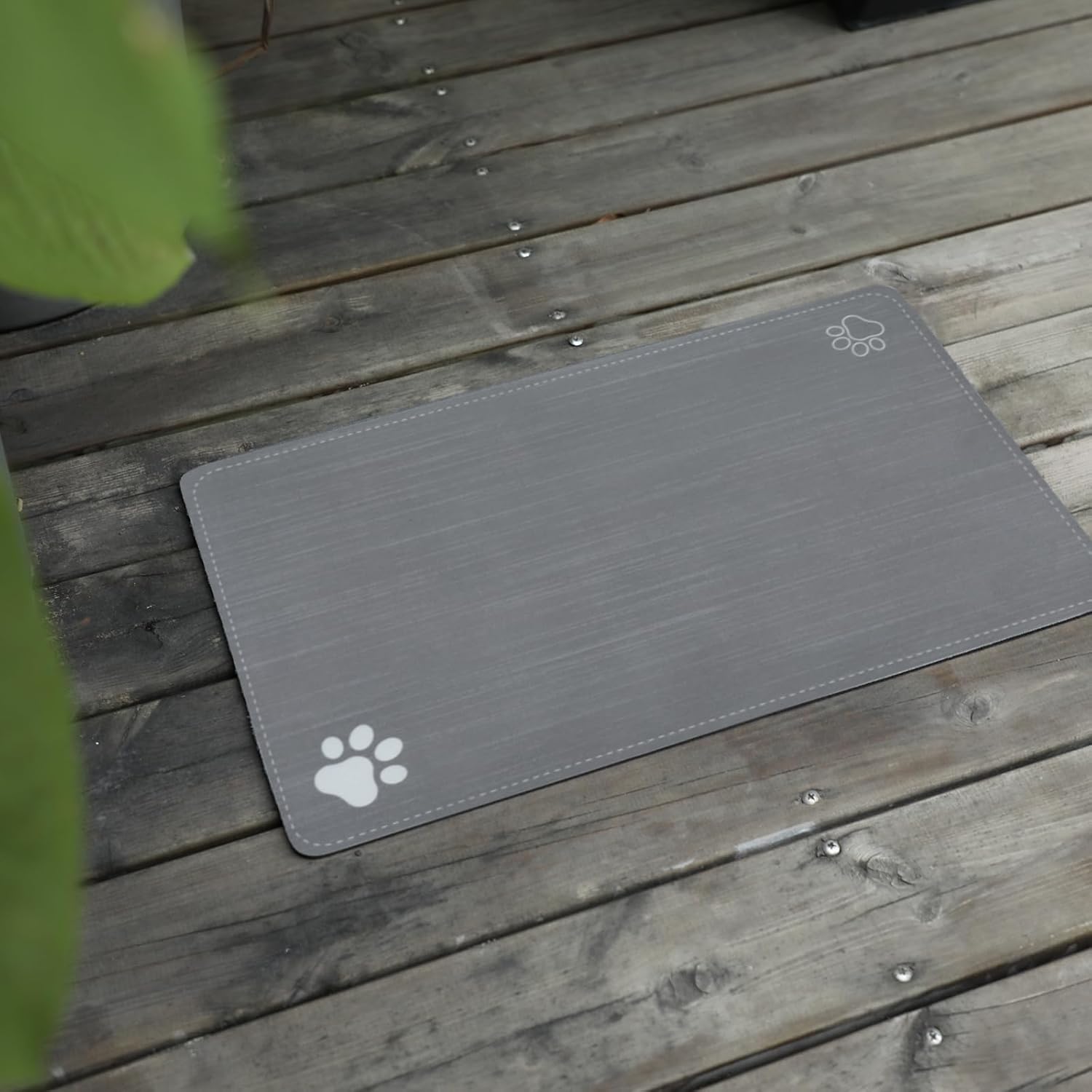 Le courant Cat & Dog Feeding Mat for Bowl-Pet Eating mat,Absorbent Non-Slip,Quick Dry Dog Water Bowl Dispenser Mat,Backing Pet Placemat for Messy Drinkers,Grey.Dog Paw-11.8x19.7 in