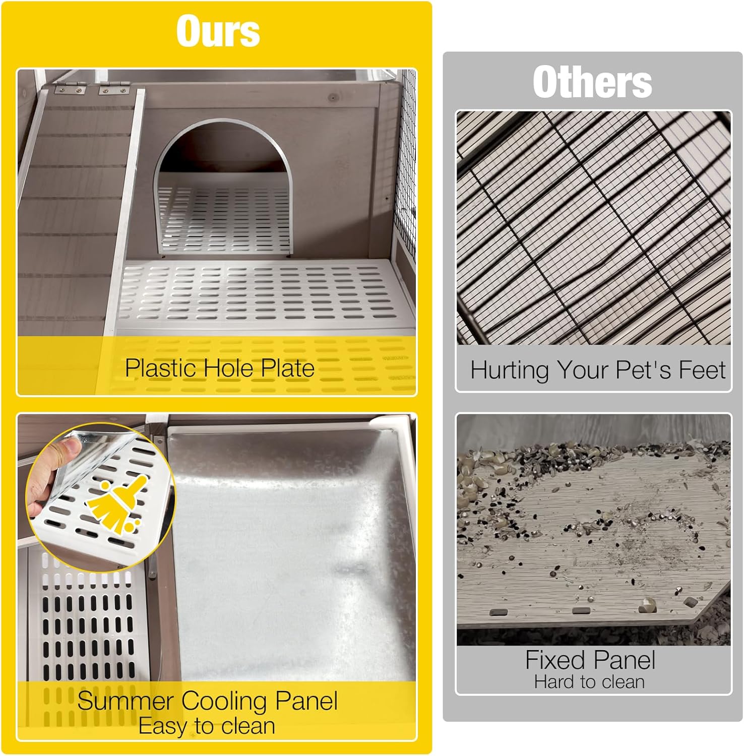 - Easy to Clean: The front and back pull-out deepening trays (with tray lock) and the openable roof also make it more convenient for you to clean the interior easily. Wire mesh that keeps pets from stepping directly on feces