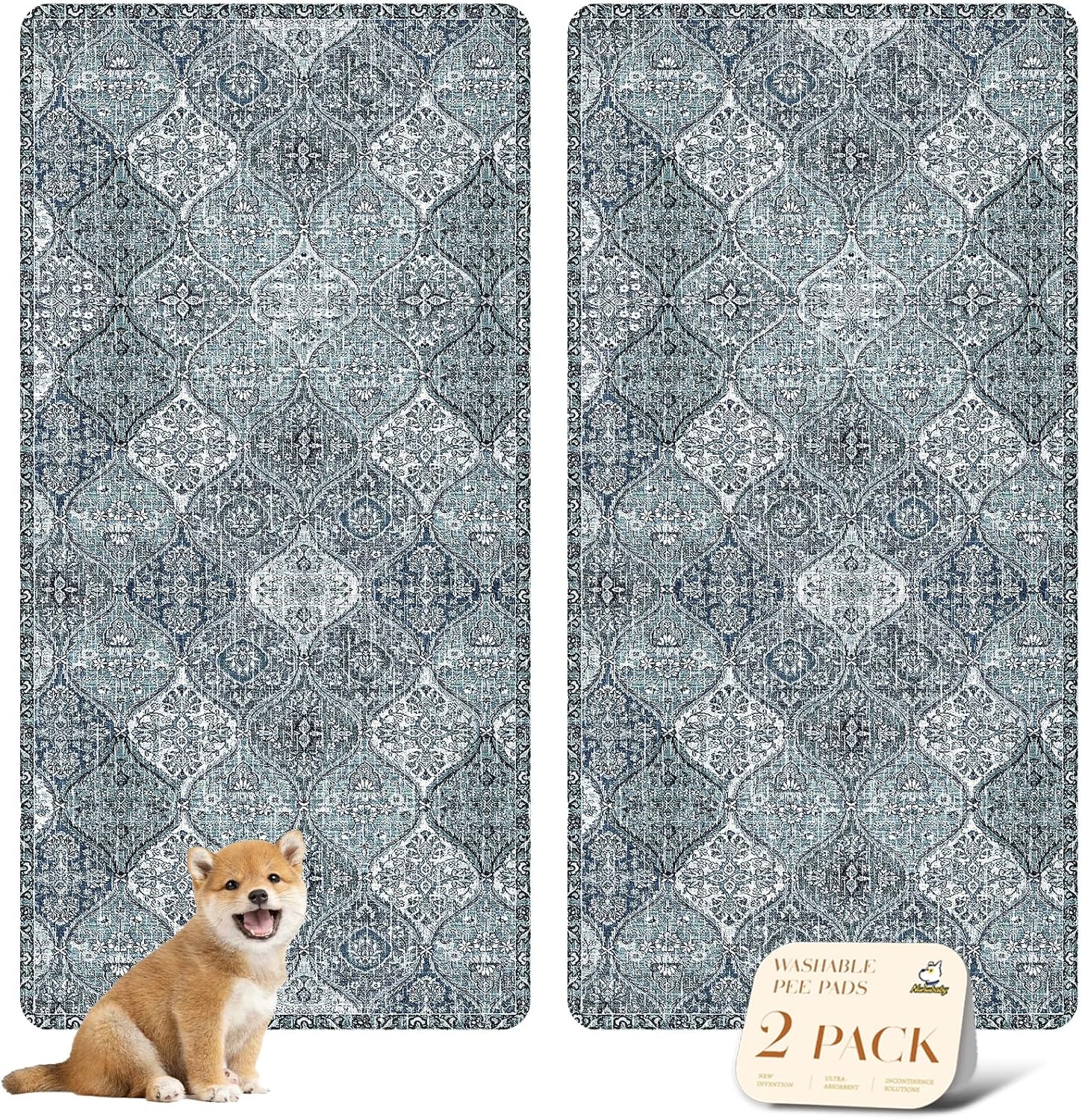 nunubaby Washable Pee Pads for Dogs, Stylish, Non-Slip and Leak-Proof Pee Pads. Reusable Potty Pads for Dogs for Crates and Floors.(Blue/Multi, 36" x72" )