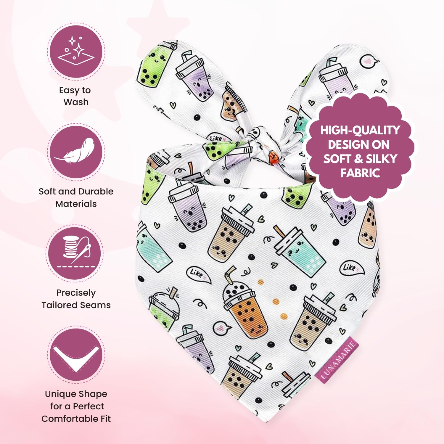 LunaMarie - Luxury Pet Birthday Bandanas -Premium & Silky Poly Fabric | 100% Handmade | Custom Shape Dual Layered (Boba, X-Small)