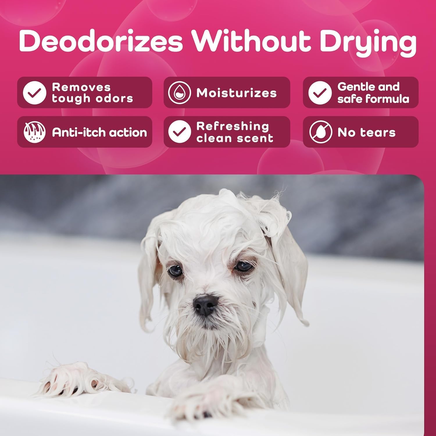 - Helps With Itching & Allergies – This gentle dog wash is designed to relieve dryness, dander, and sensitivity. It helps reduce scratching and flaking, making it an ideal dog shampoo for sensitive skin, allergy-prone breeds, or pets struggling with environmental irritants. We proudly do not test on animals when we create our cruelty-free products.